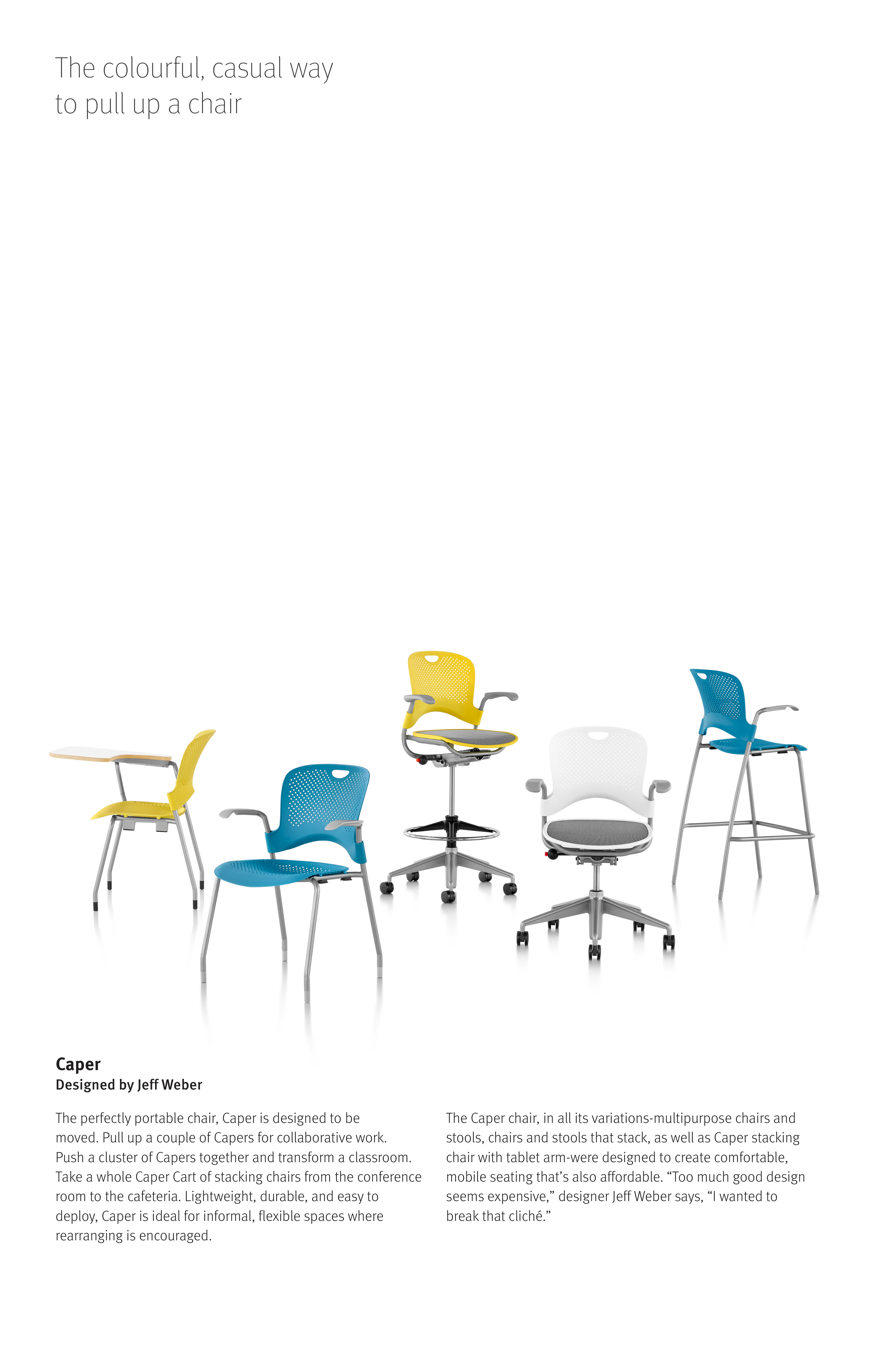 deploy, Caper is ideal for informal, flexible spaces where