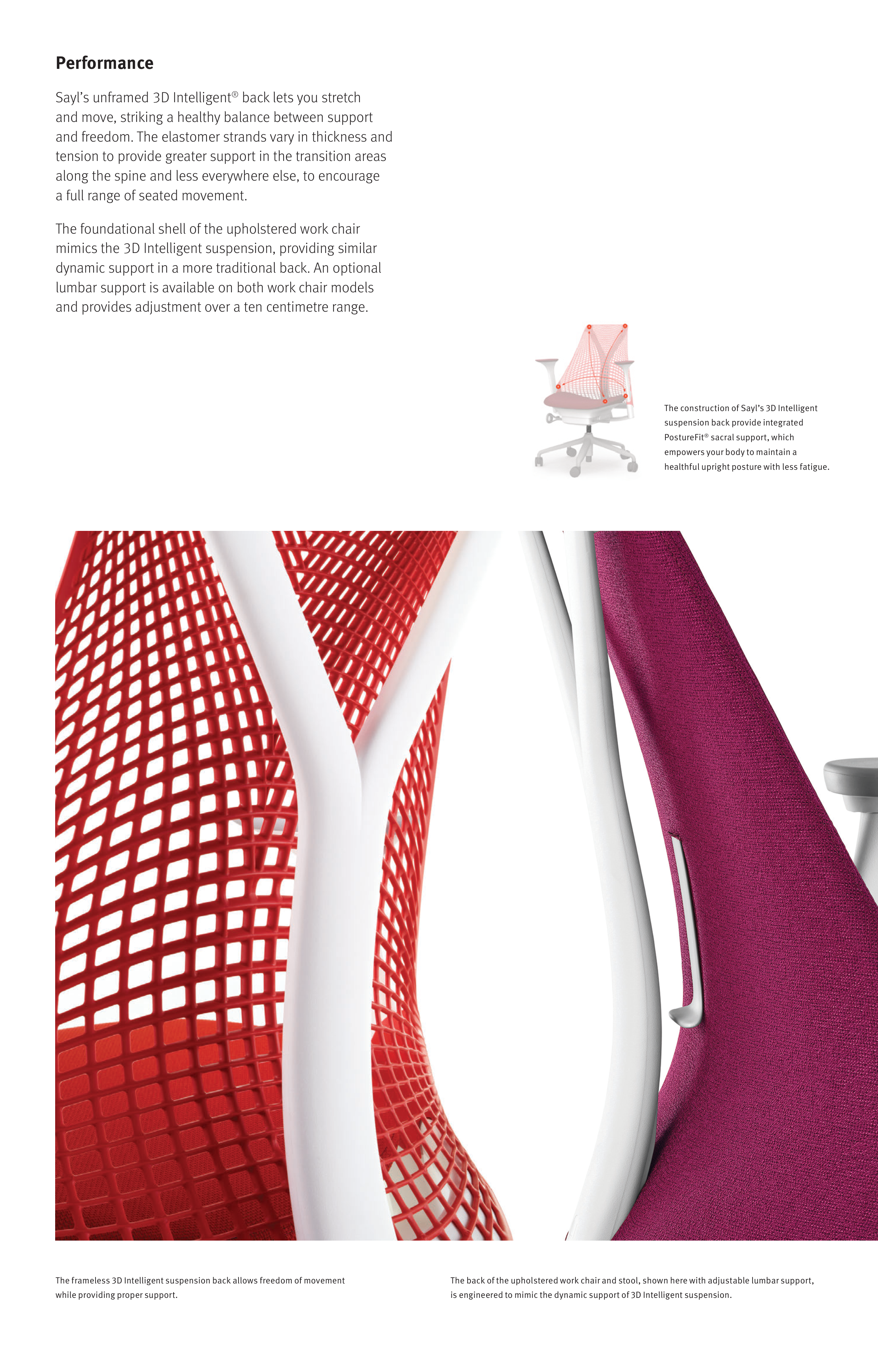 Sayl’s unframed 3D Intelligent® back lets you stretch