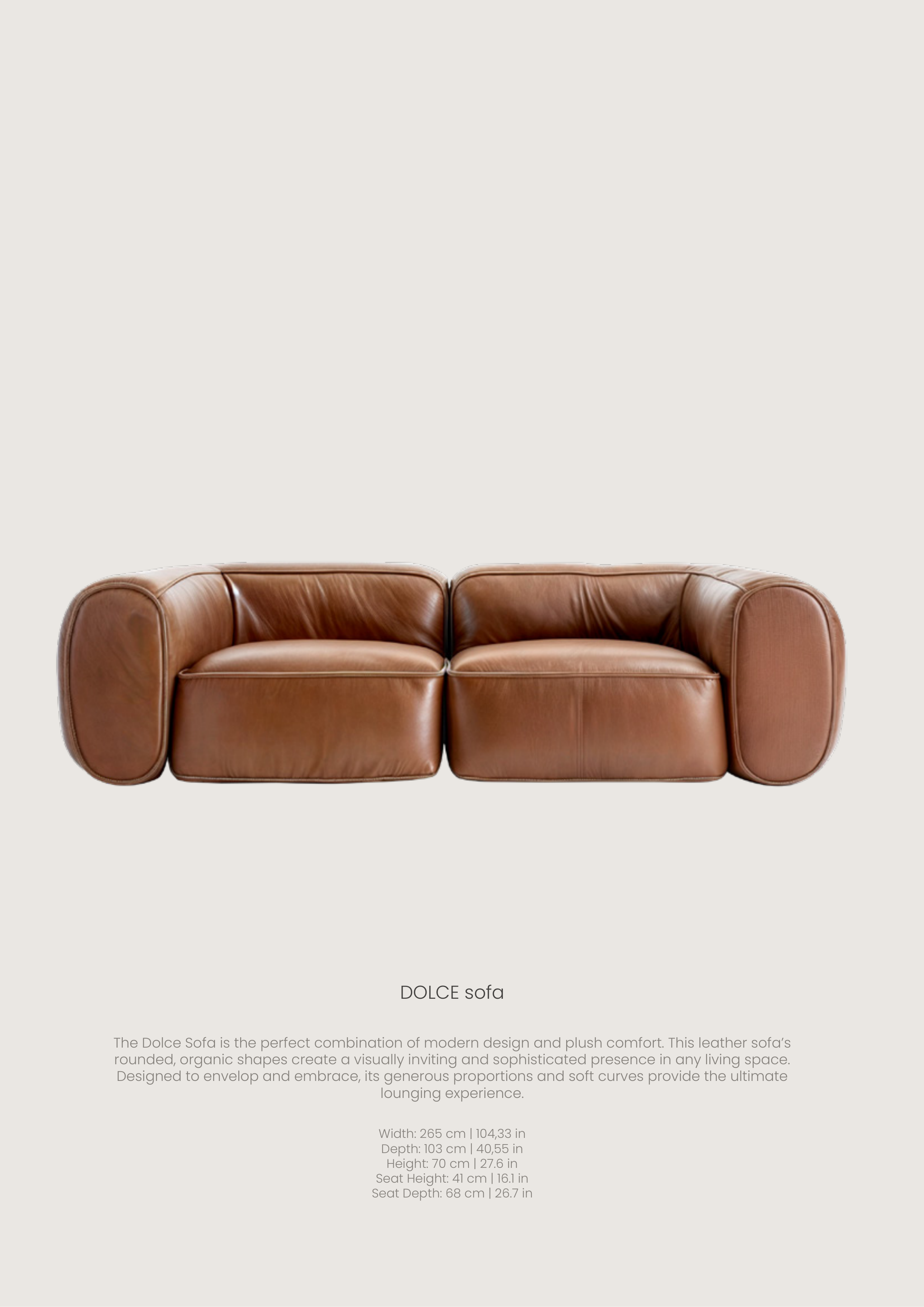 The Dolce Sofa is the perfect combination of modern design and plush comfort. This leather sofa’s