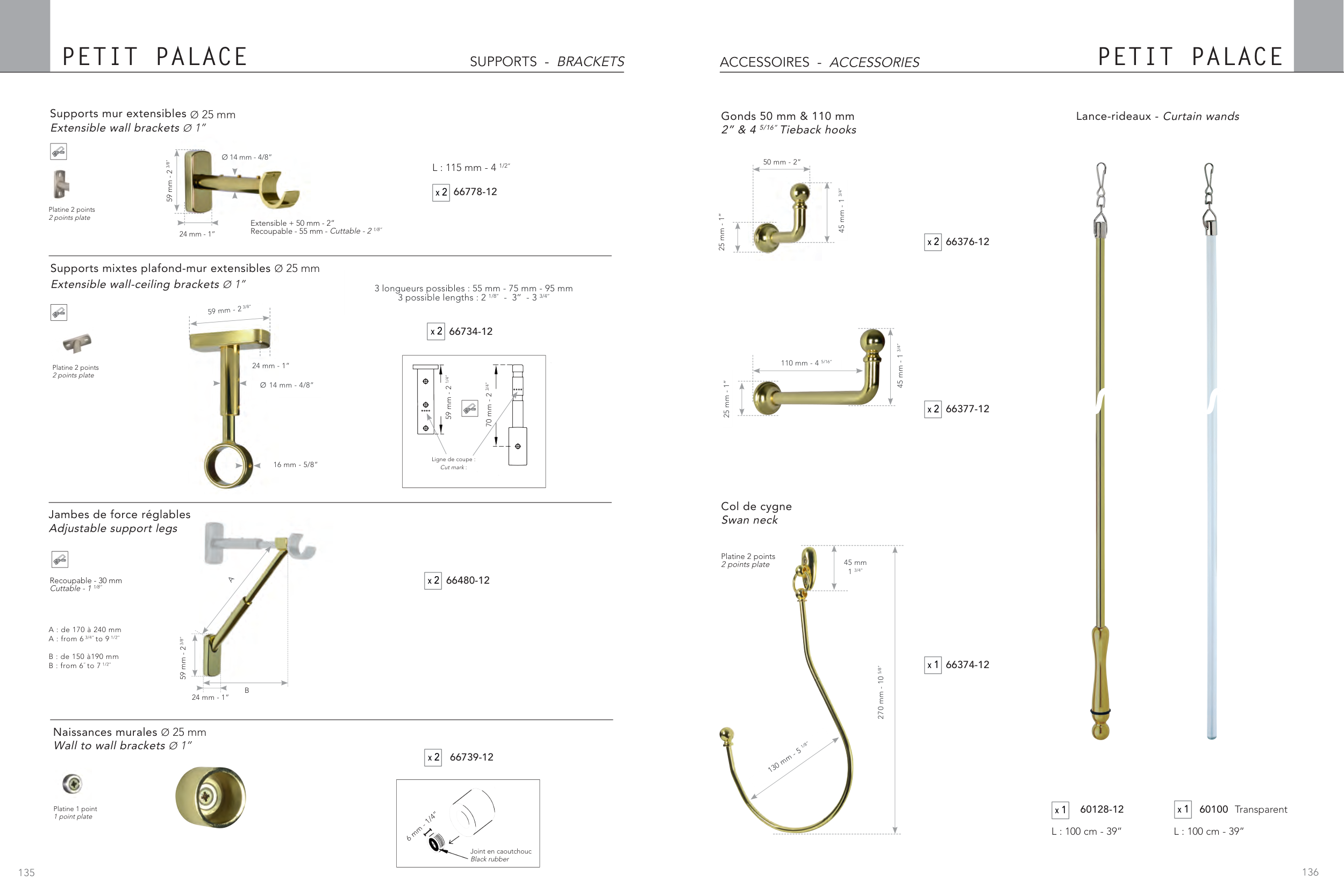 Extensible wall-ceiling brackets Ø 1’’