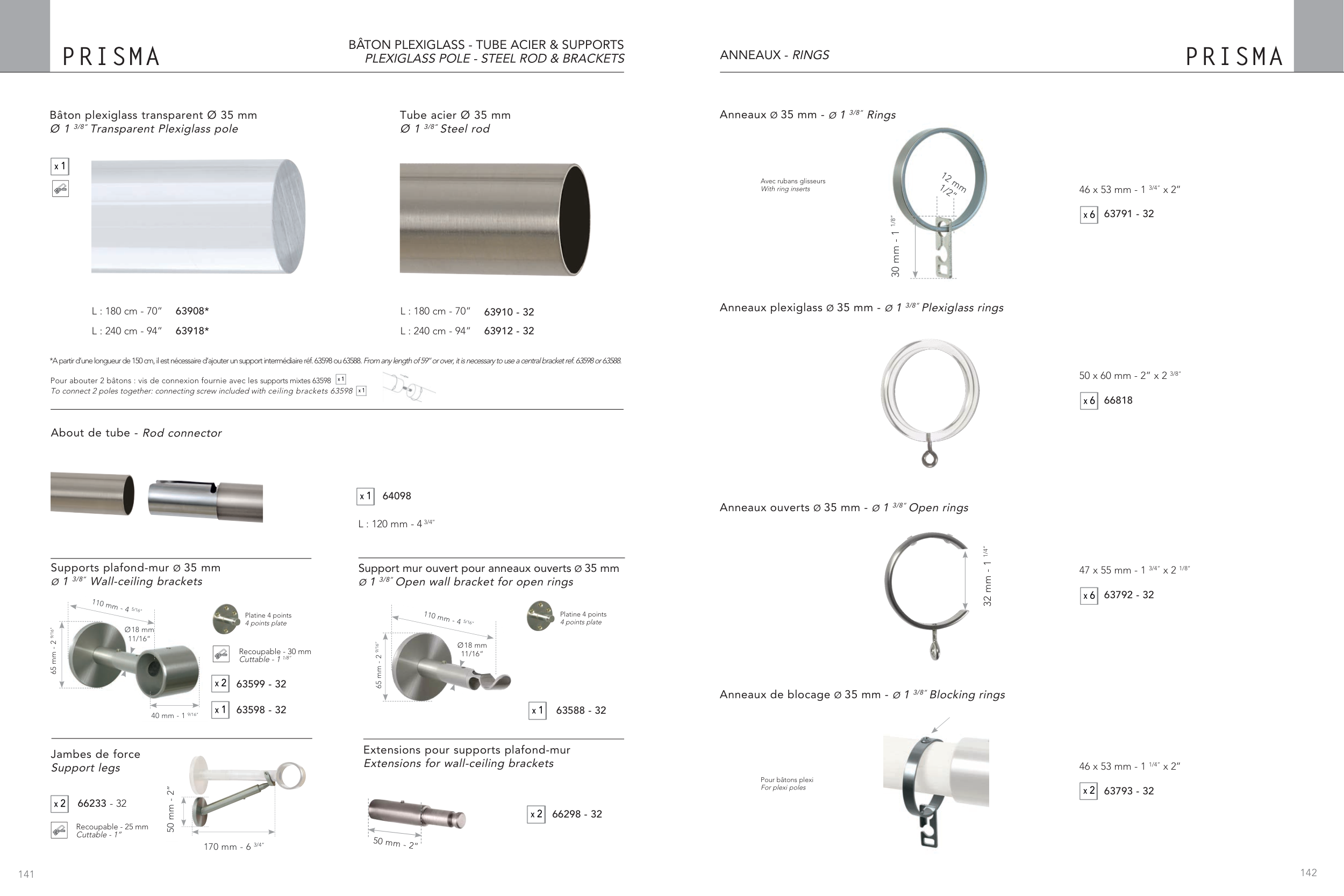 *A partir d’une longueur de 150 cm, il est nécessaire d’ajouter un support intermédiaire réf. 63598 ou 63588. From any length of 59’’ or over, it is necessary to use a central bracket ref. 63598 or 63588.