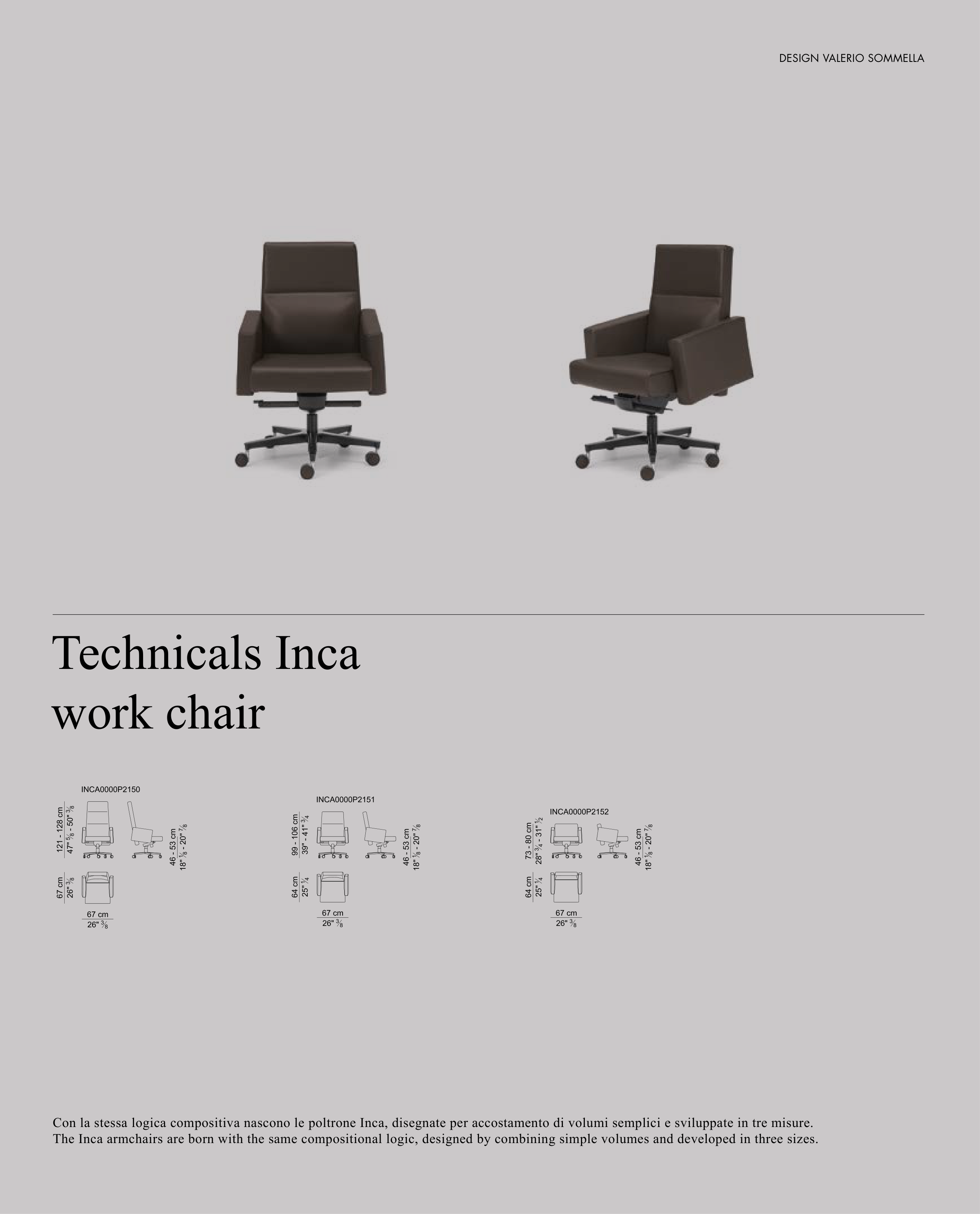Con la stessa logica compositiva nascono le poltrone Inca, disegnate per accostamento di volumi semplici e sviluppate in tre misure.