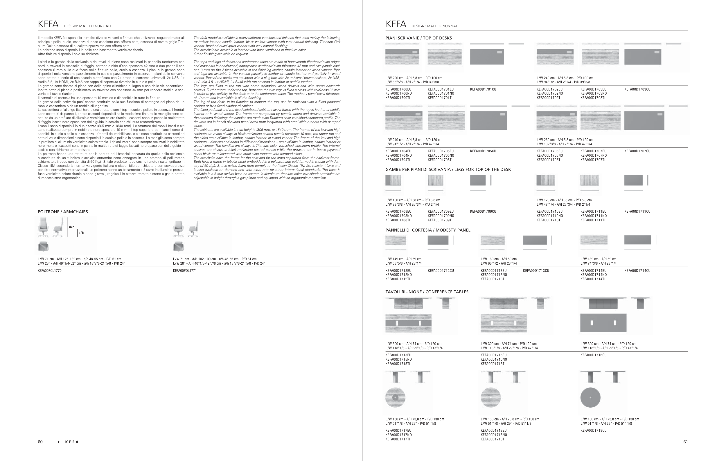 Il modello KEFA è disponibile in molte diverse varianti e fi niture che utilizzano i seguenti materiali