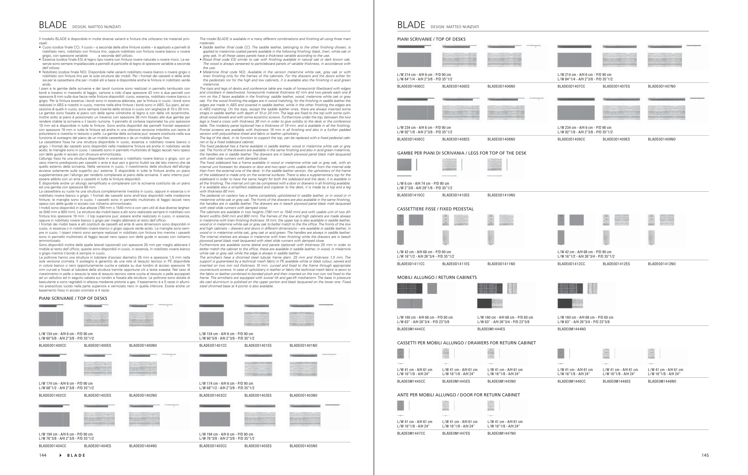 Il modello BLADE è disponibile in molte diverse varianti e fi niture che utilizzano tre materiali prin-