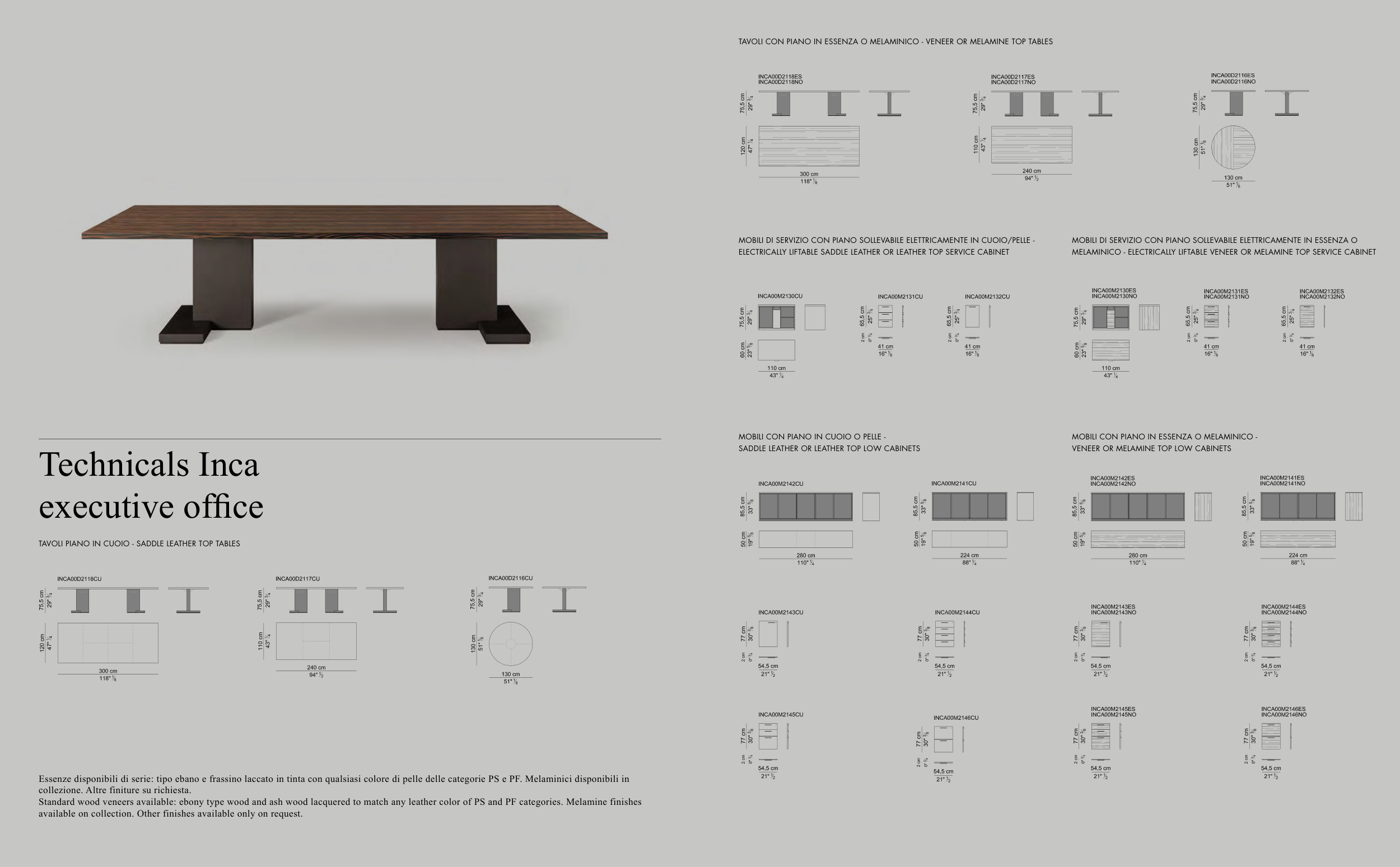 Standard wood veneers available: ebony type wood and ash wood lacquered to match any leather color of PS and PF categories. Melamine finishes