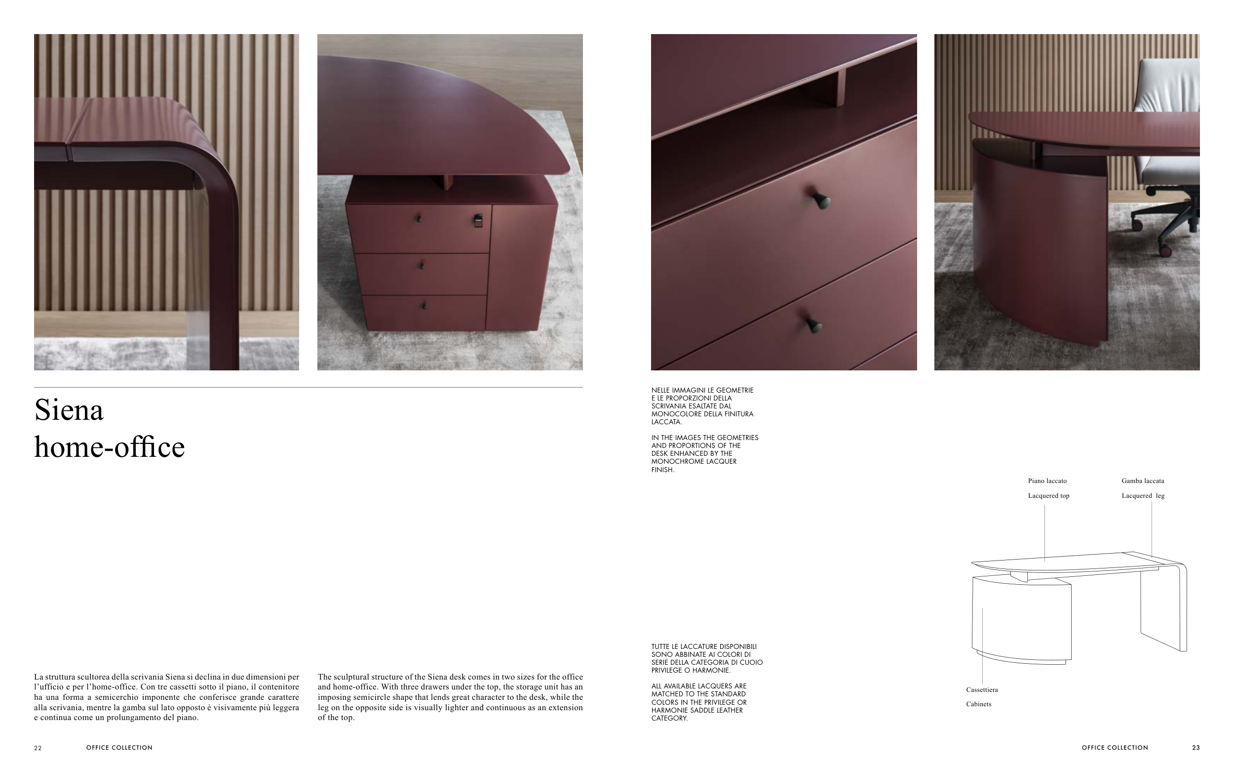 La struttura scultorea della scrivania Siena si declina in due dimensioni per