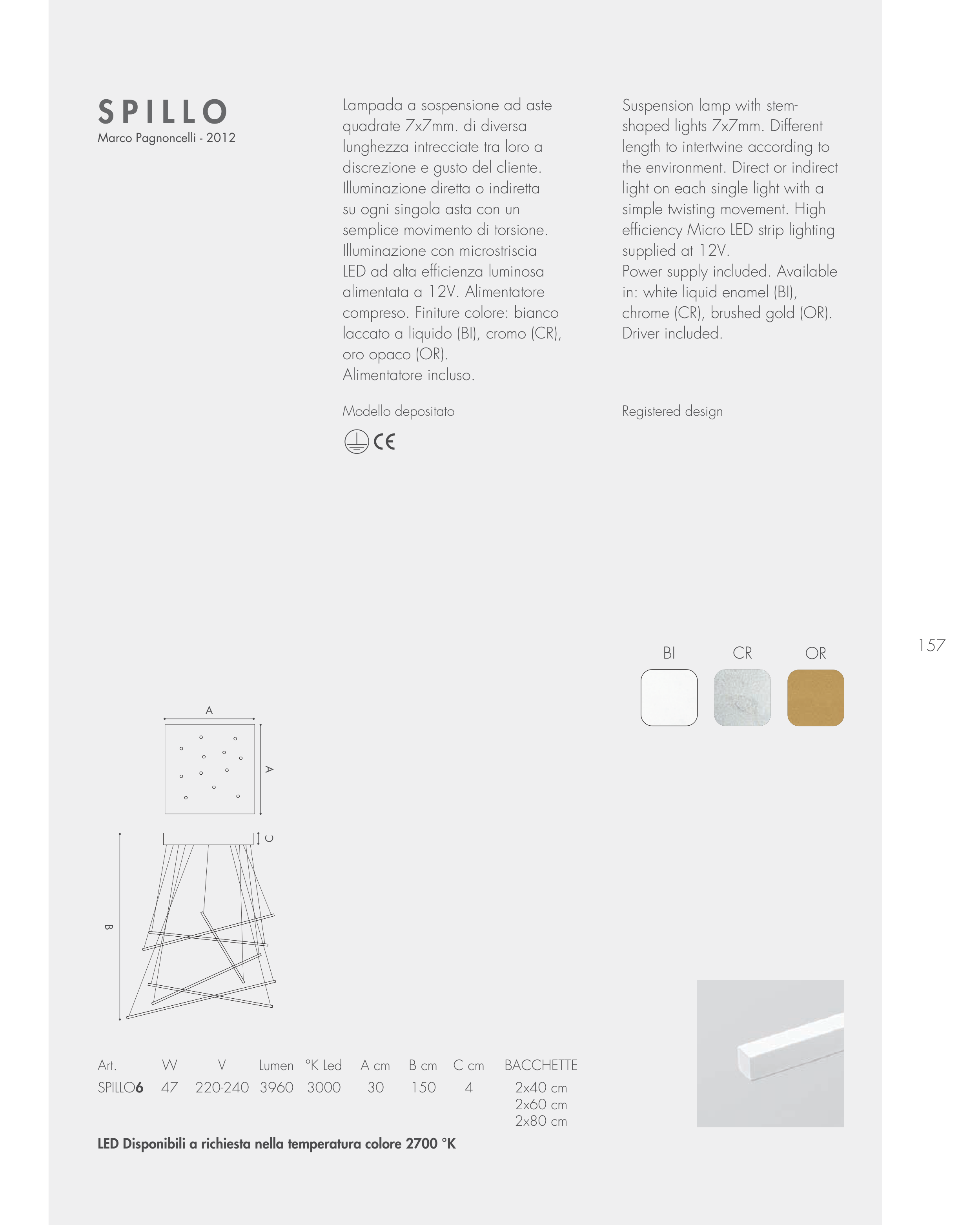 LED Disponibili a richiesta nella temperatura colore 2700 °K