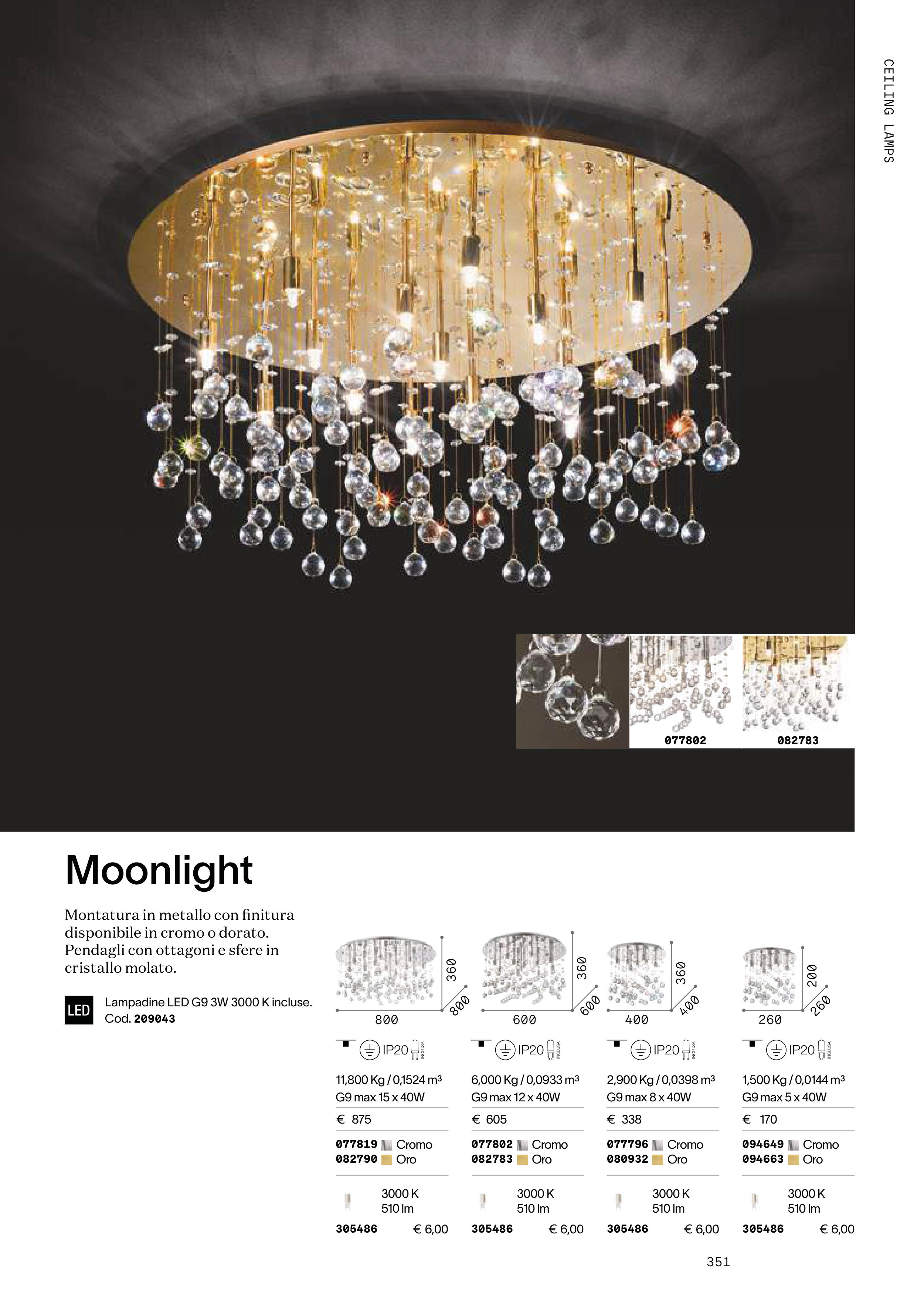Lampadine LED G9 3W 3000 K incluse.