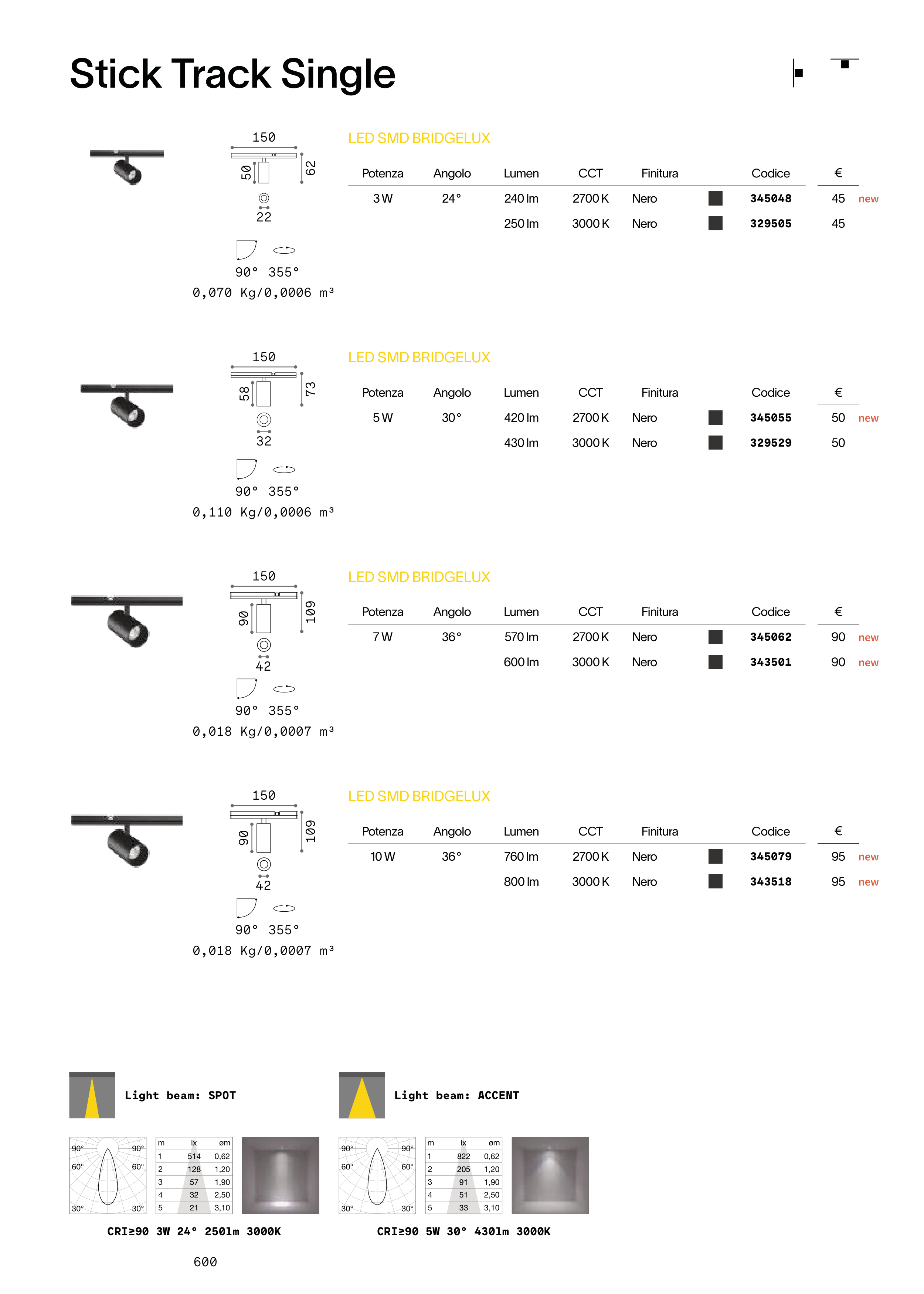 CRI≥90 3W 24° 250lm 3000K