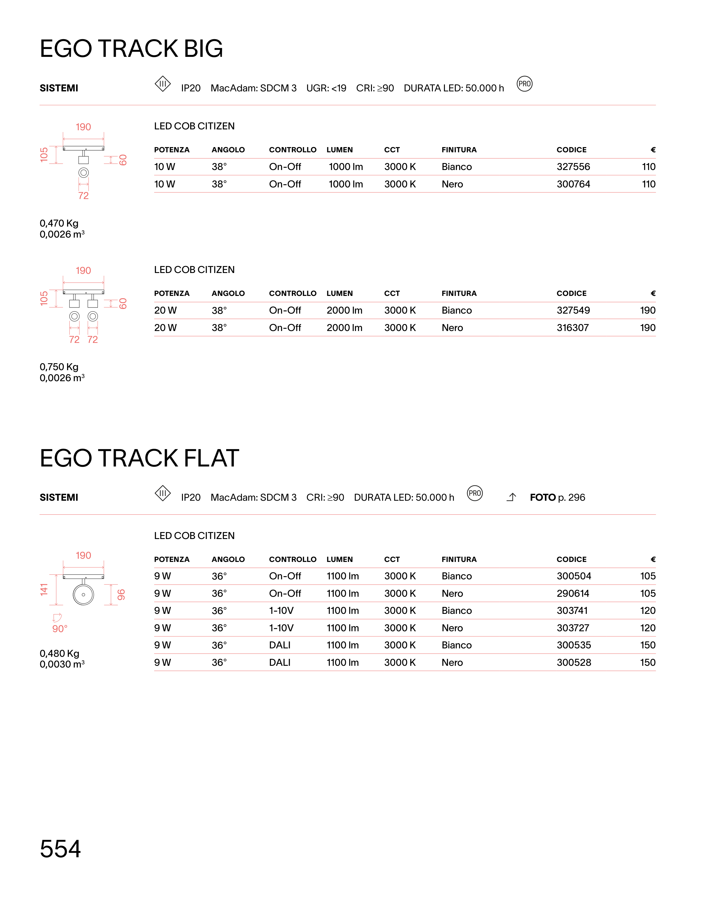 IP20 MacAdam: SDCM 3 CRI: ≥90 DURATA LED: 50.000 h