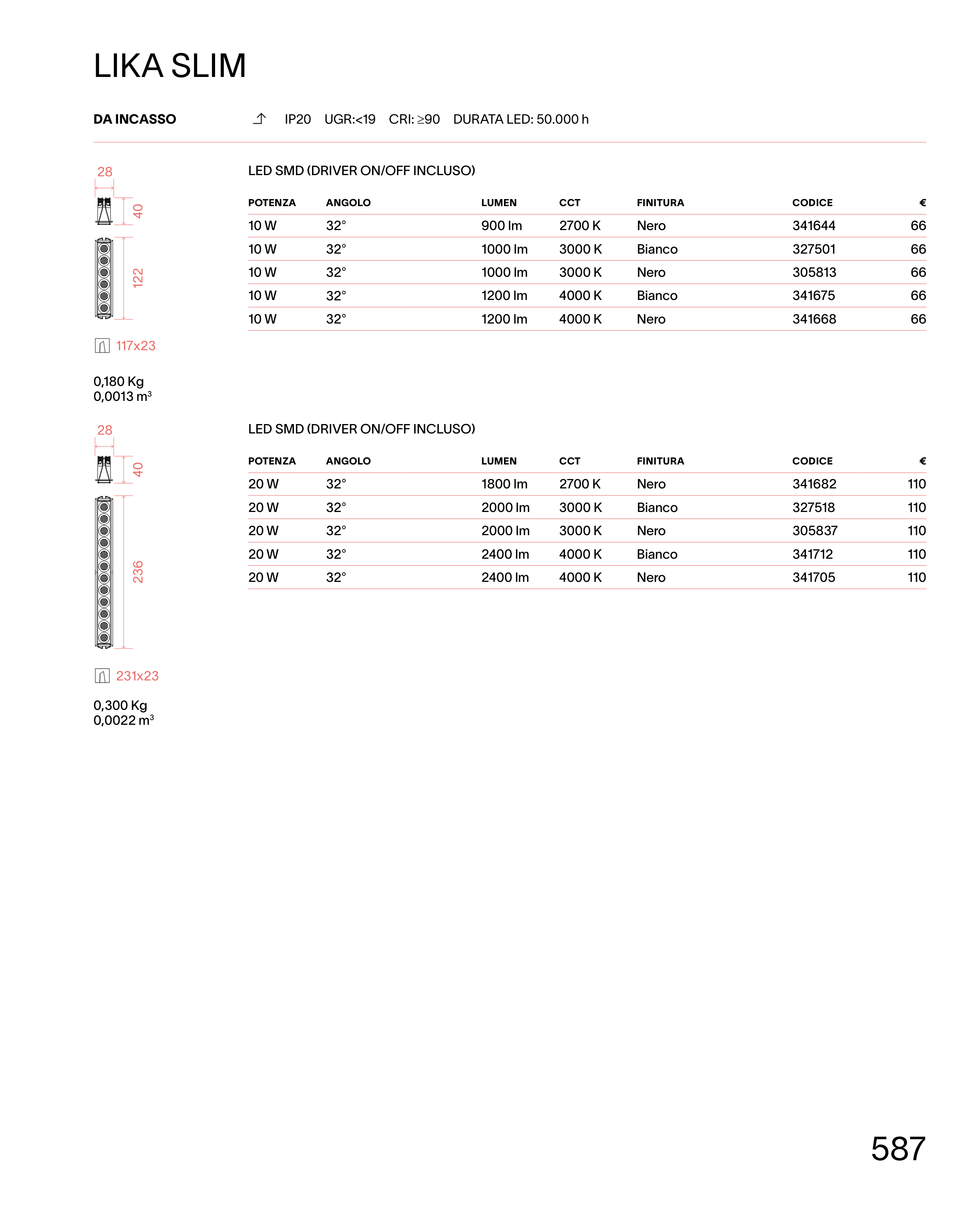 IP20 UGR:<19 CRI: ≥90 DURATA LED: 50.000 h