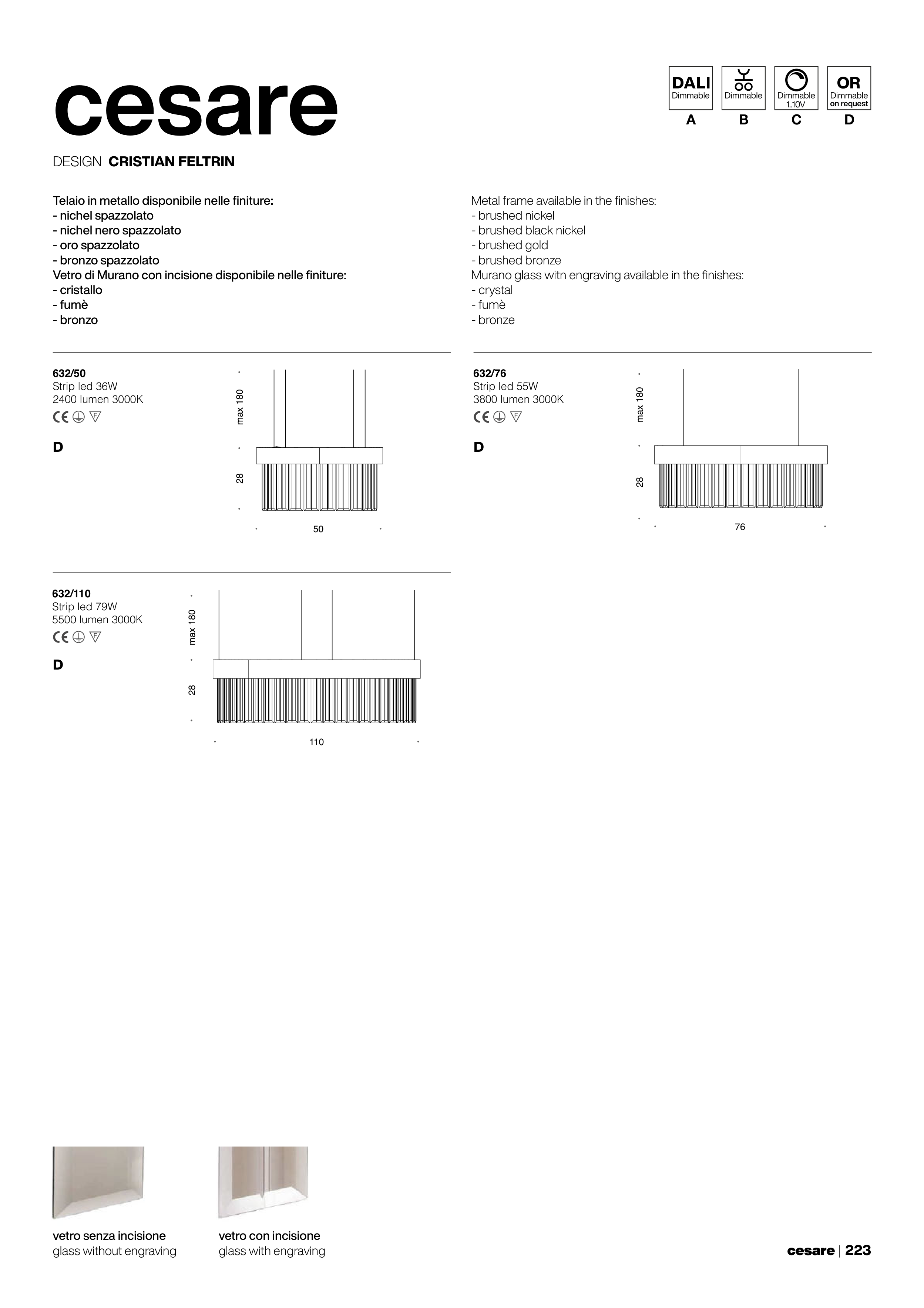 Murano glass witn engraving available in the finishes: