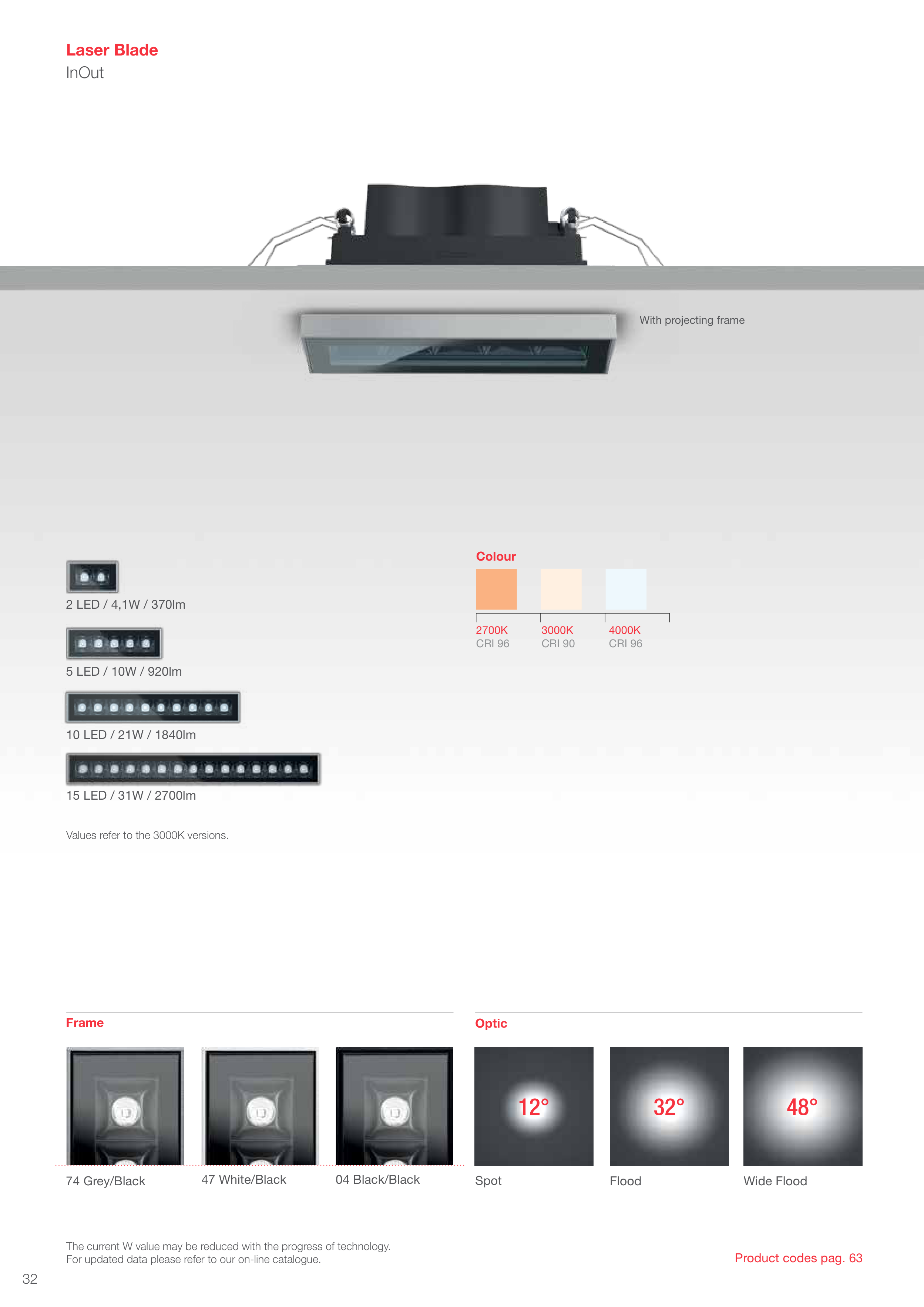 Values refer to the 3000K versions.