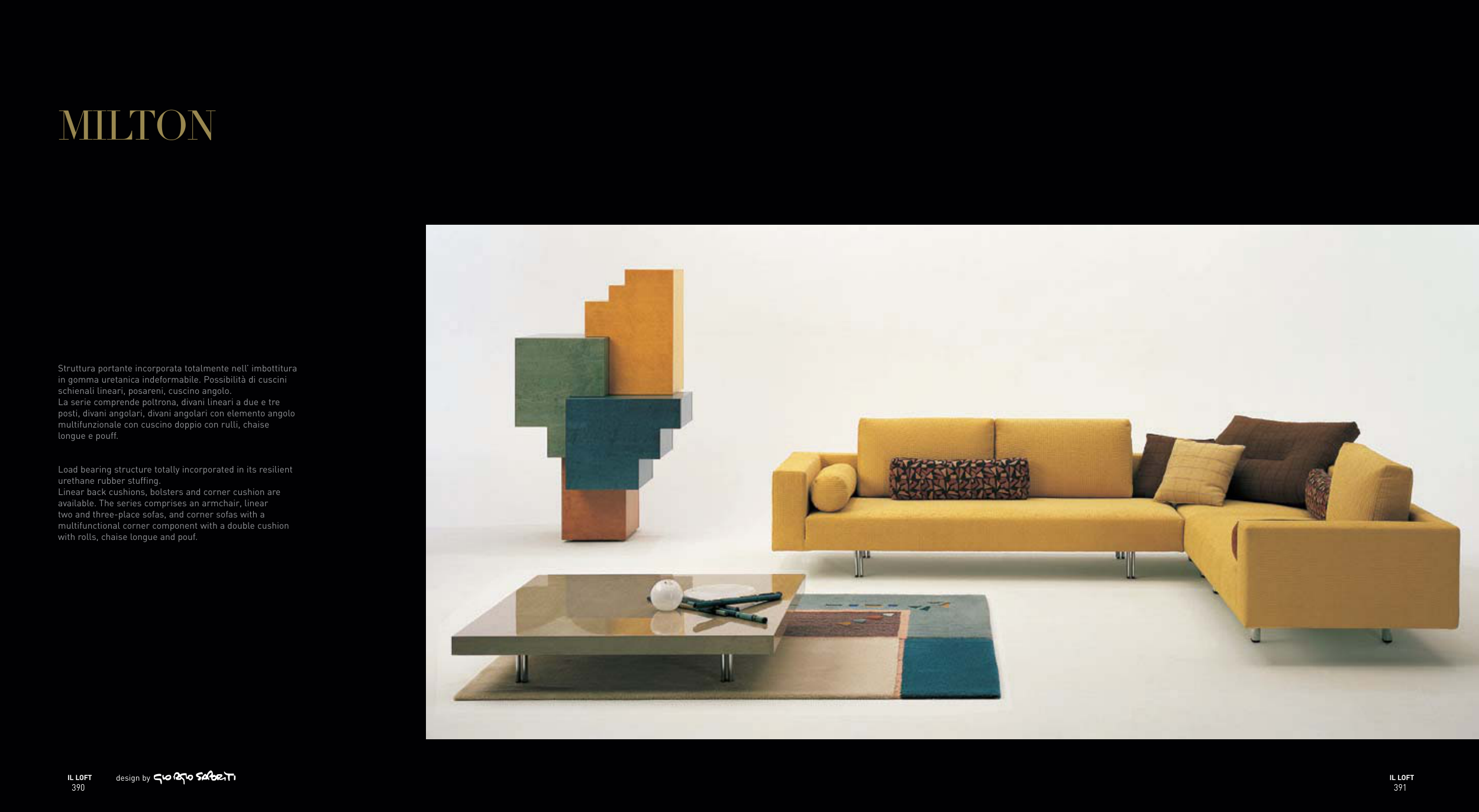 schienali lineari, posareni, cuscino angolo.