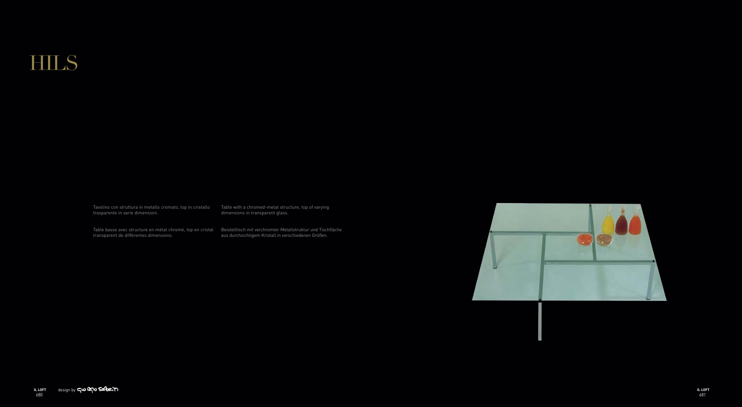 Tavolino con struttura in metallo cromato, top in cristallo