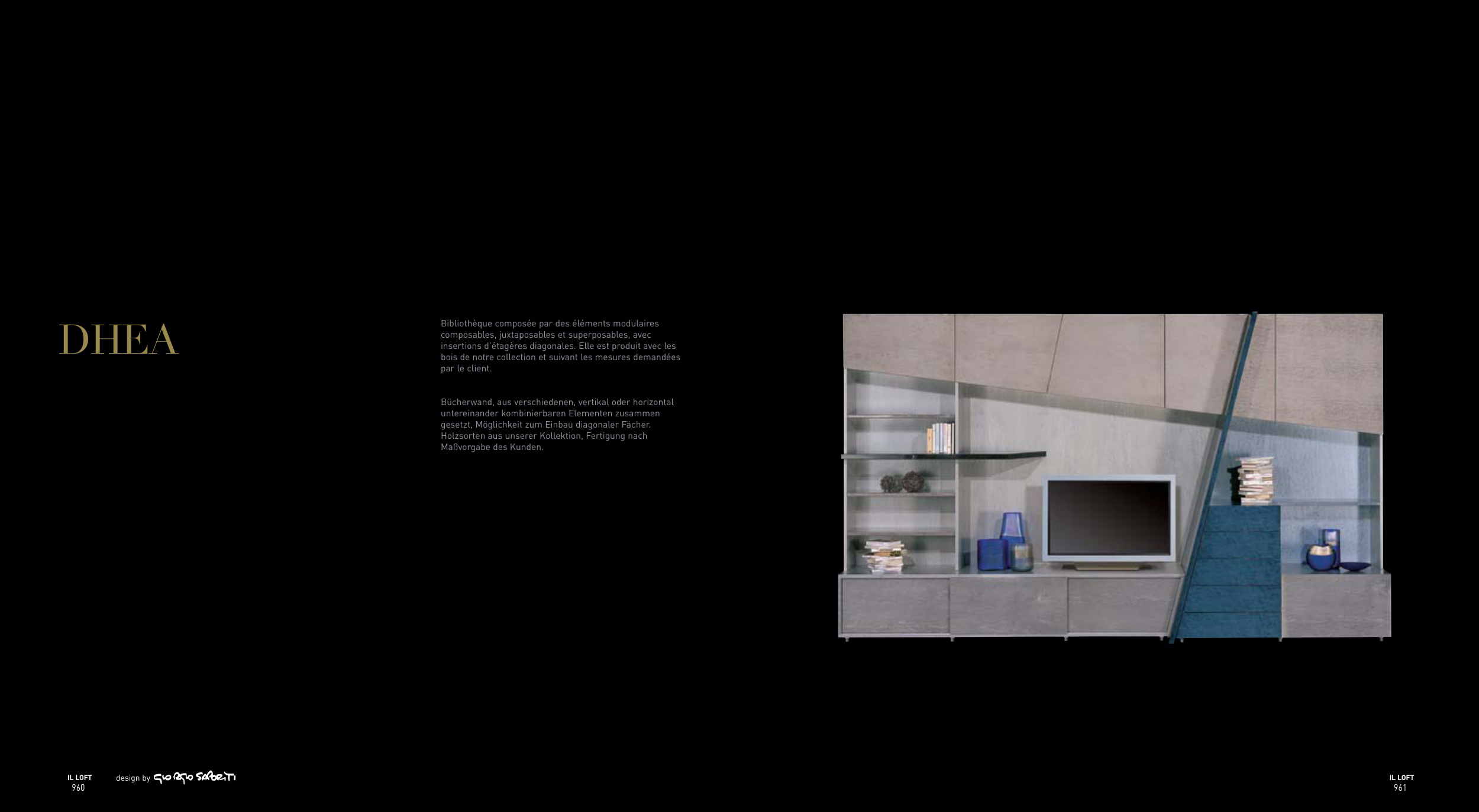 Bücherwand, aus verschiedenen, vertikal oder horizontal