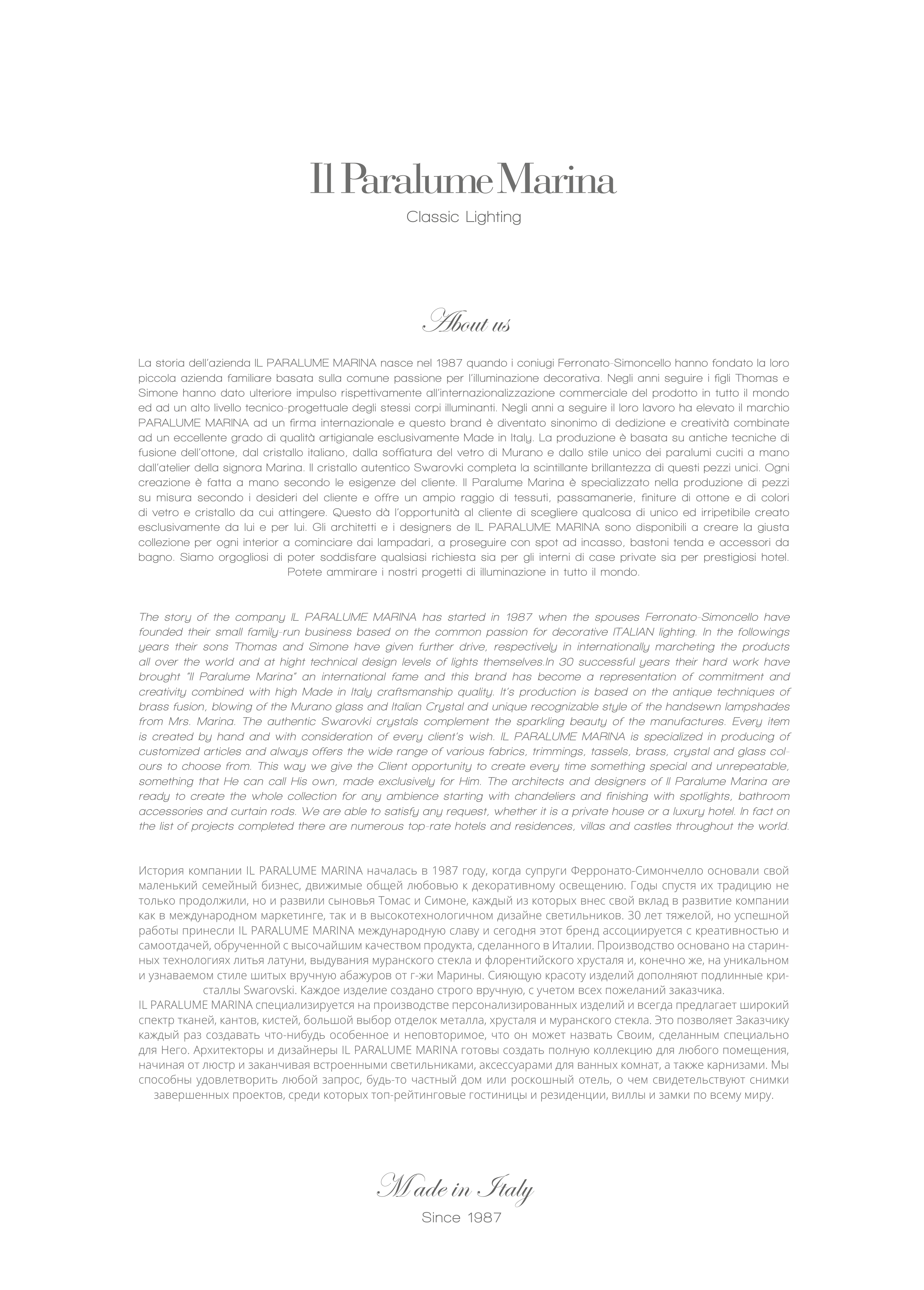 is created by hand and with consideration of every client’s wish. IL PARALUME MARINA is specialized in producing of