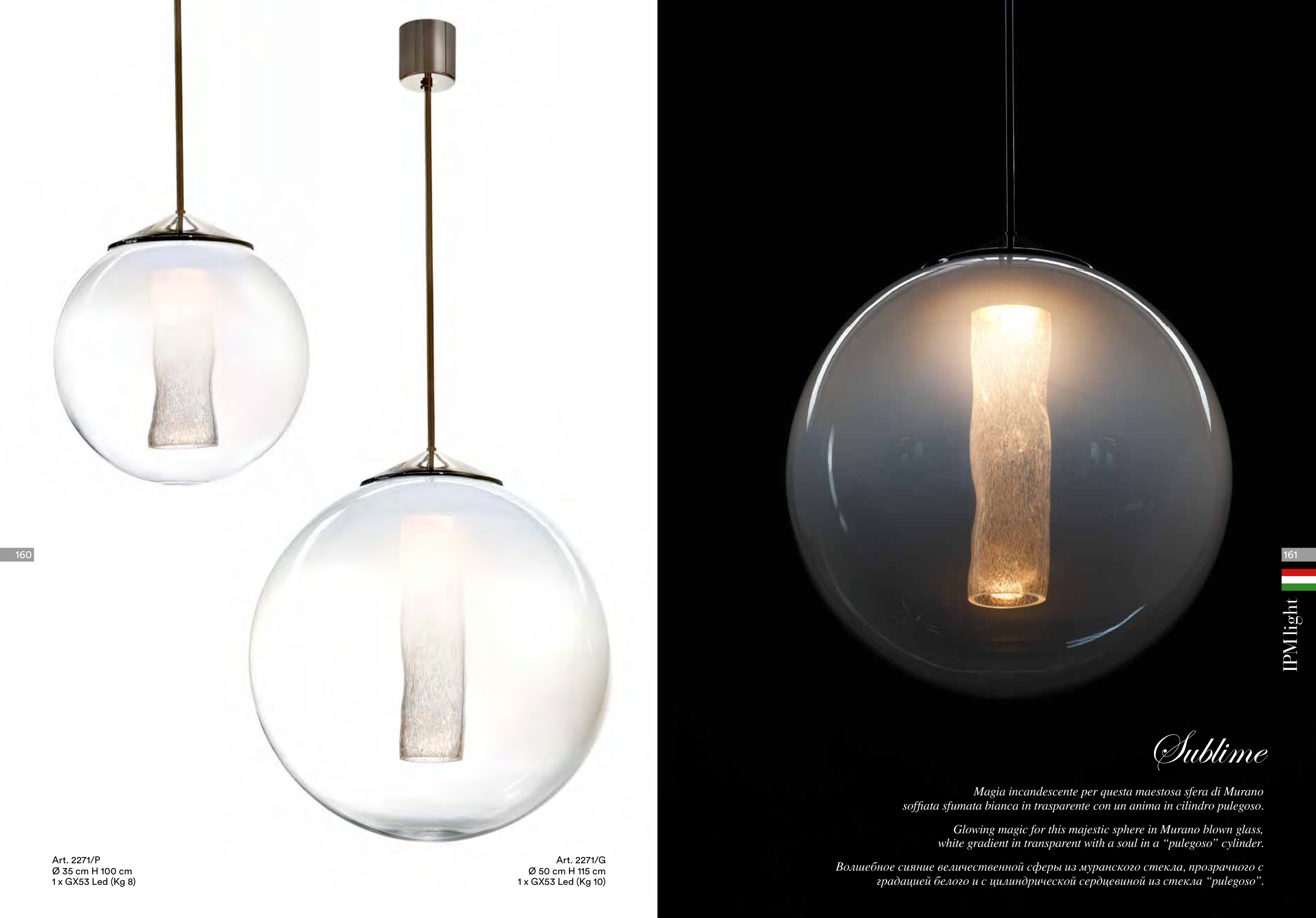 градацией белого и с цилиндрической сердцевиной из стекла “pulegoso”.