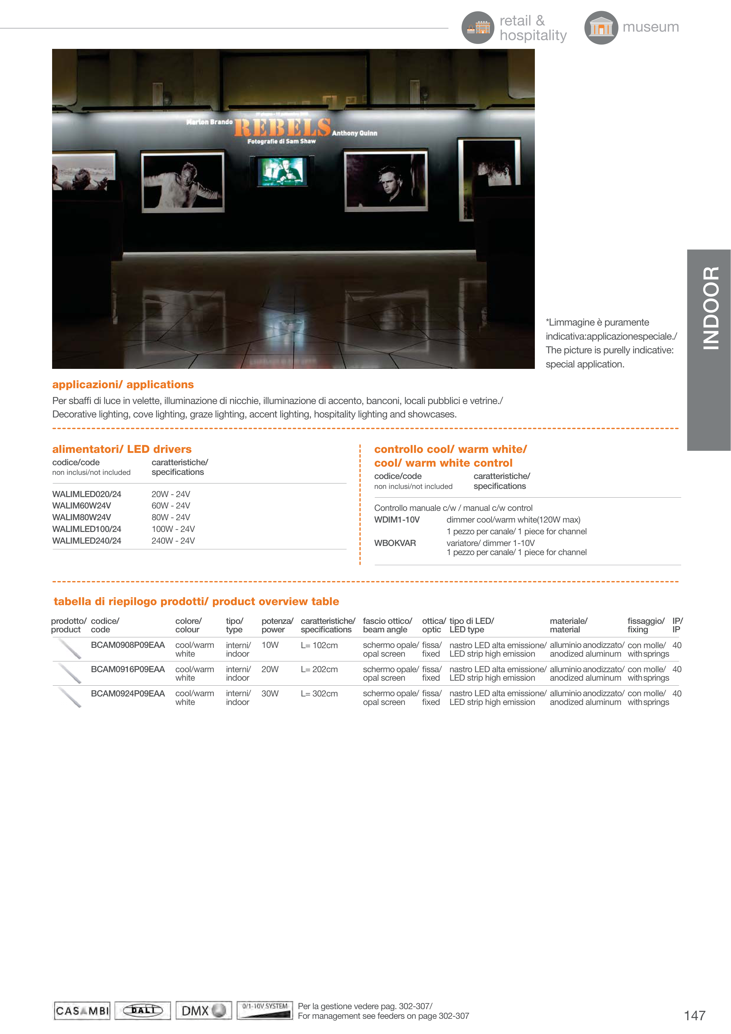 controllo cool/ warm white/