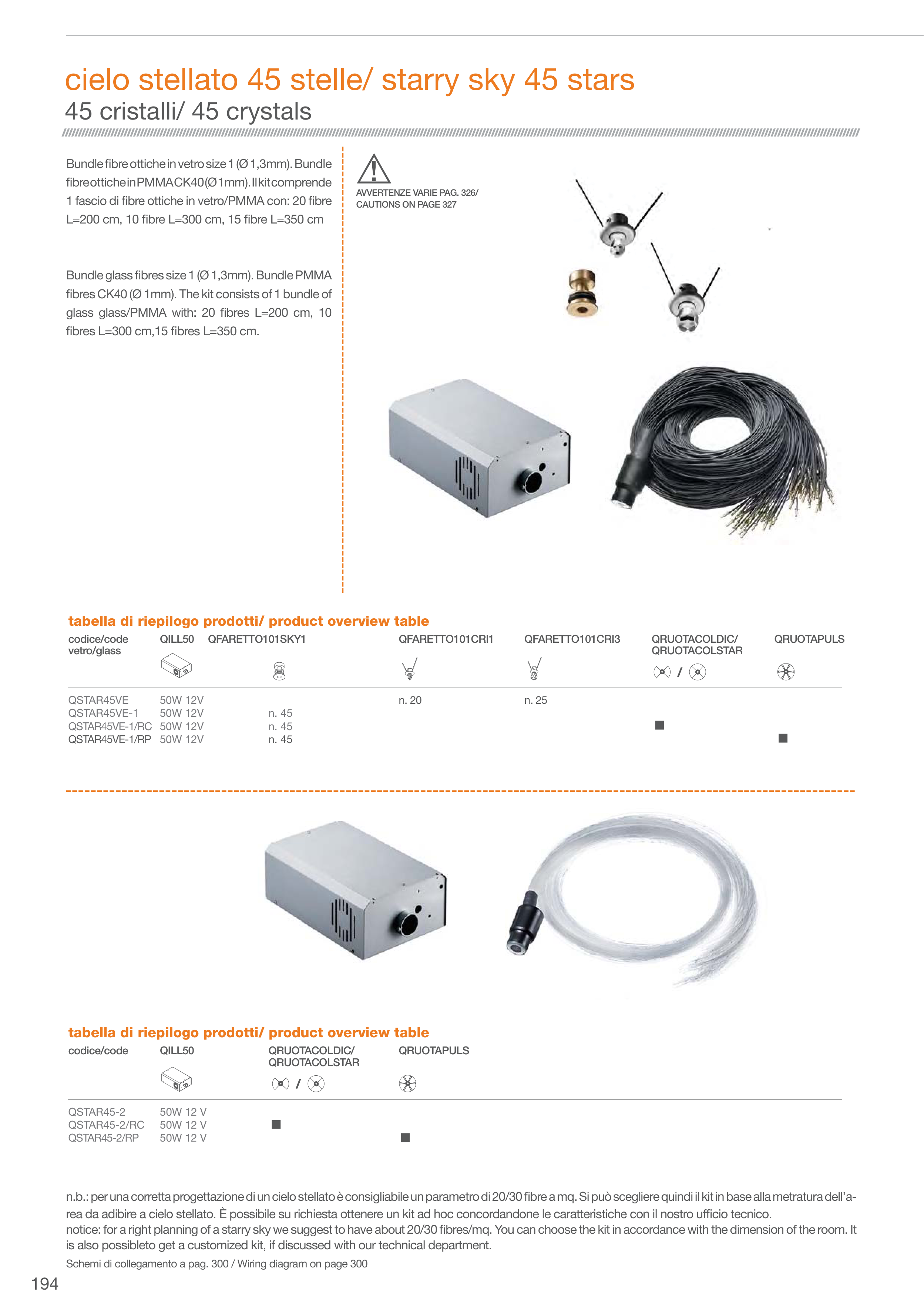 tabella di riepilogo prodotti/ product overview table