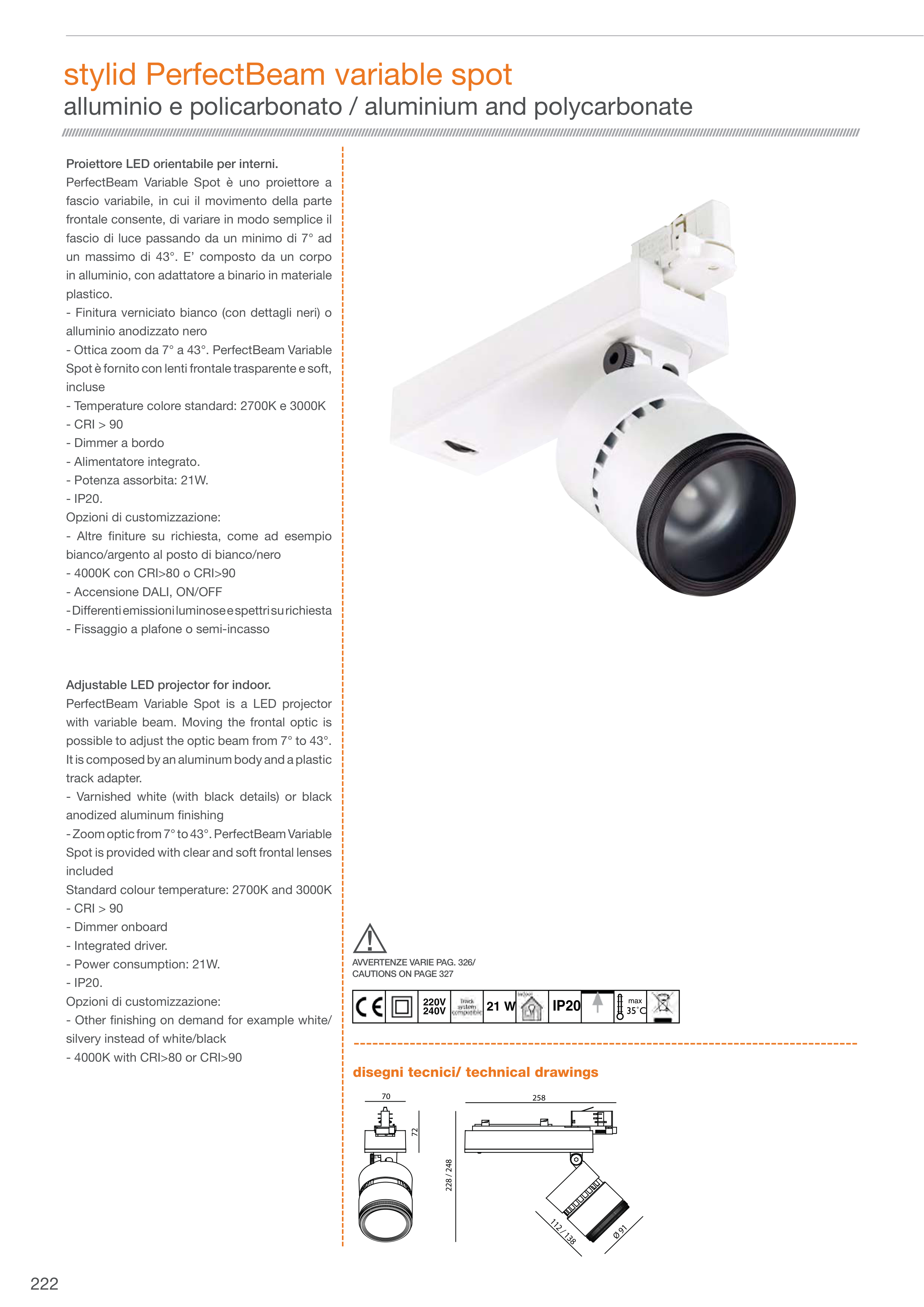 Proiettore LED orientabile per interni.