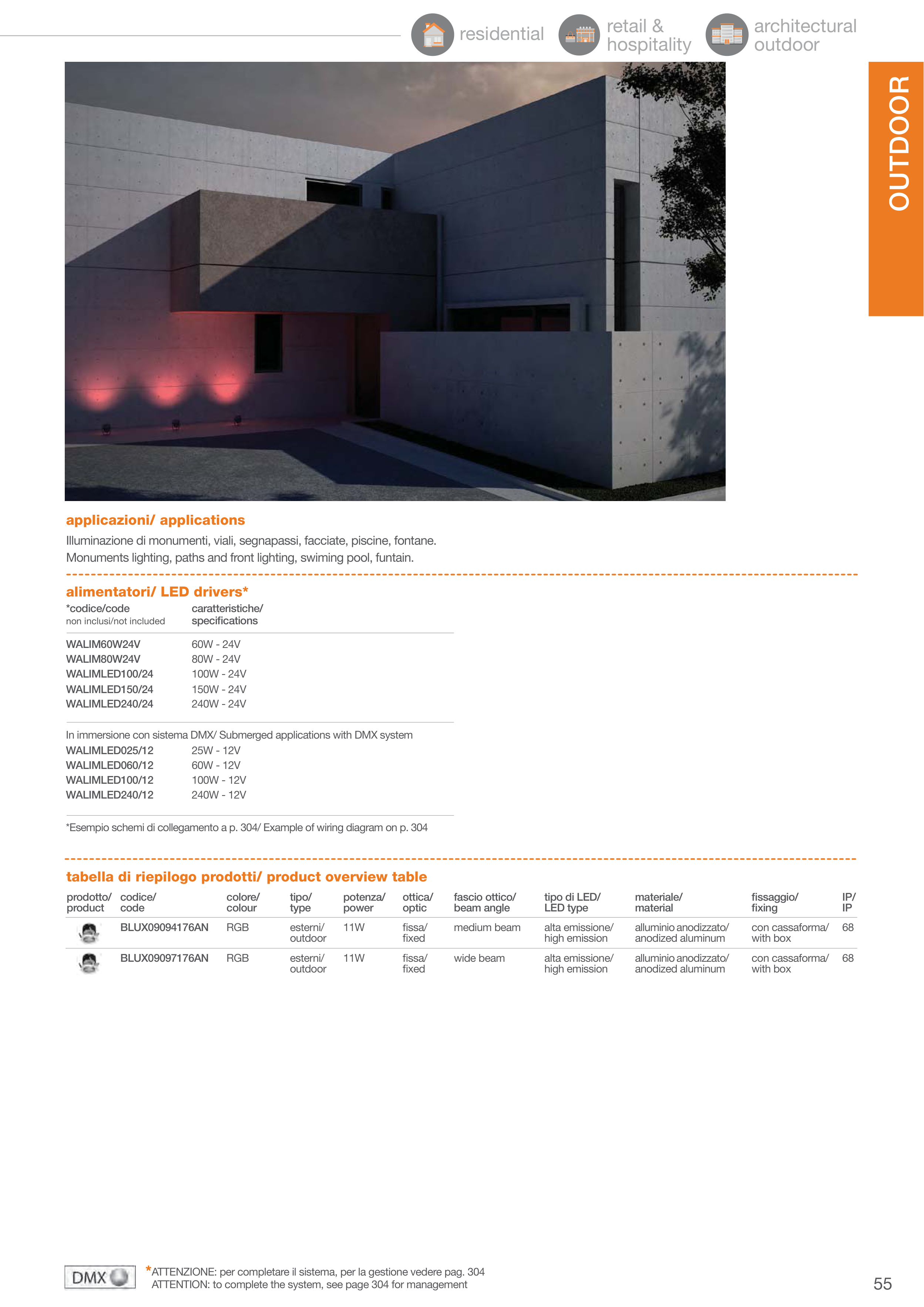 Illuminazione di monumenti, viali, segnapassi, facciate, piscine, fontane.