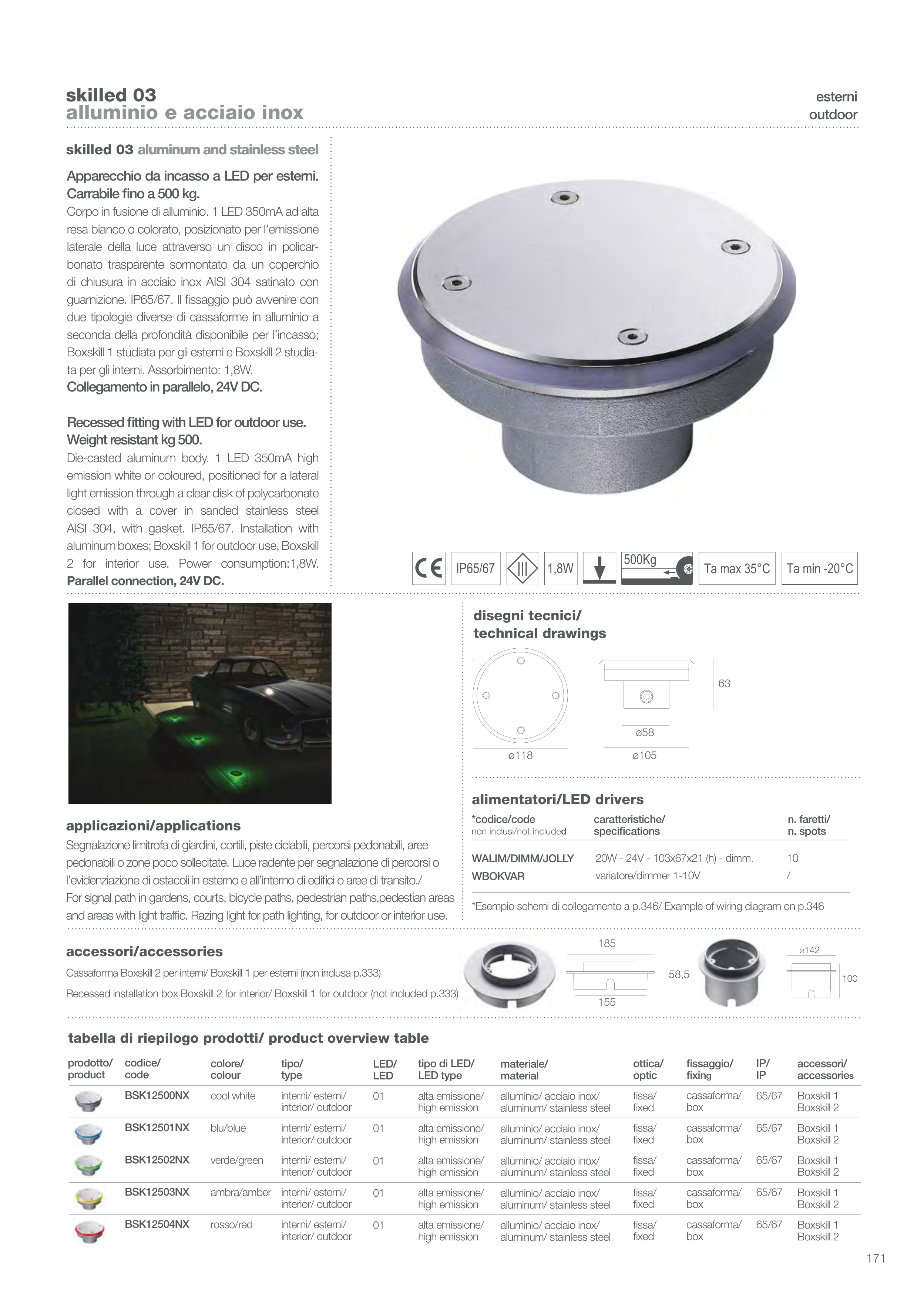 Recessed installation box Boxskill 2 for interior/ Boxskill 1 for outdoor (not included p.333)