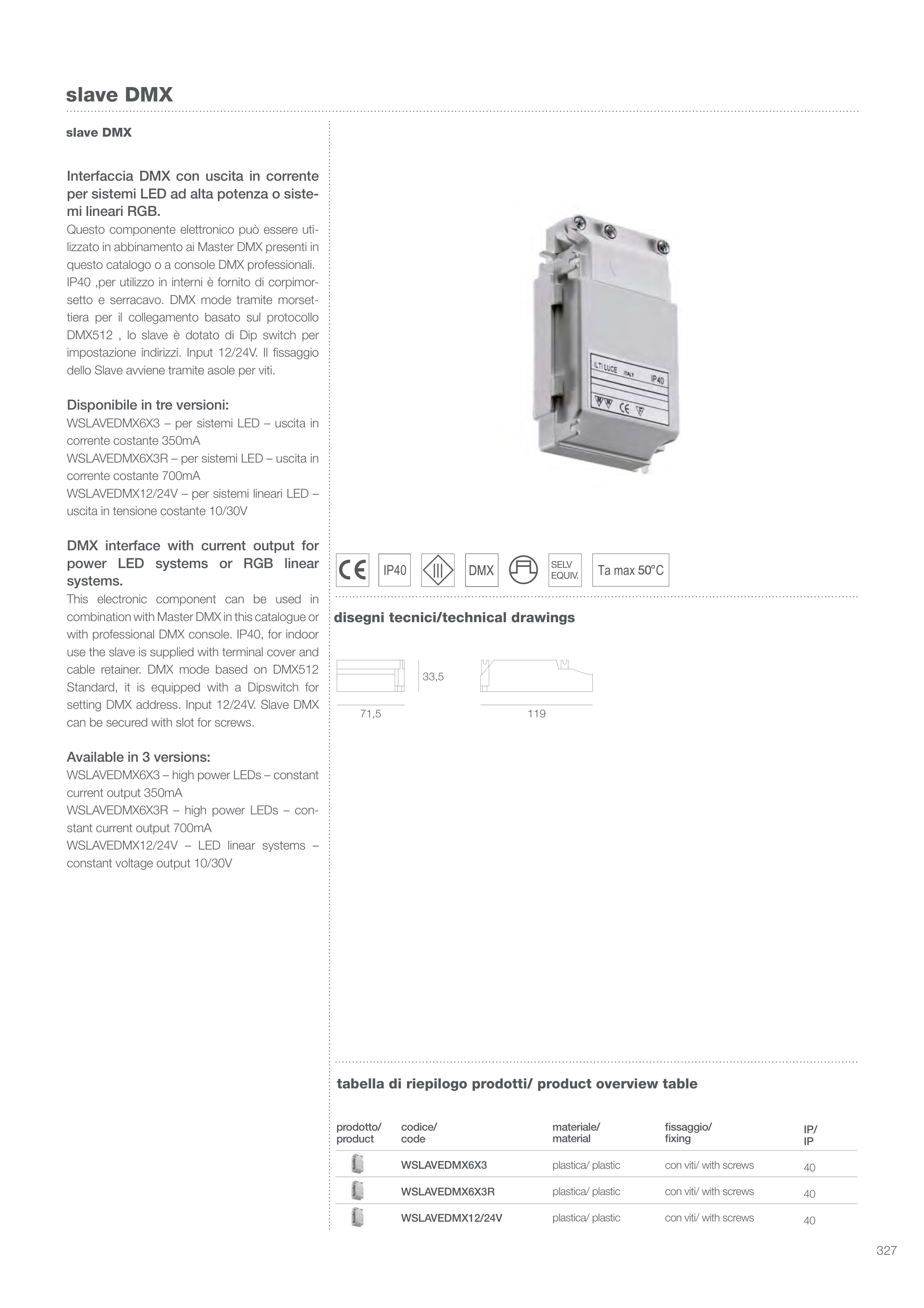 WSLAVEDMX6X3 – per sistemi LED – uscita in