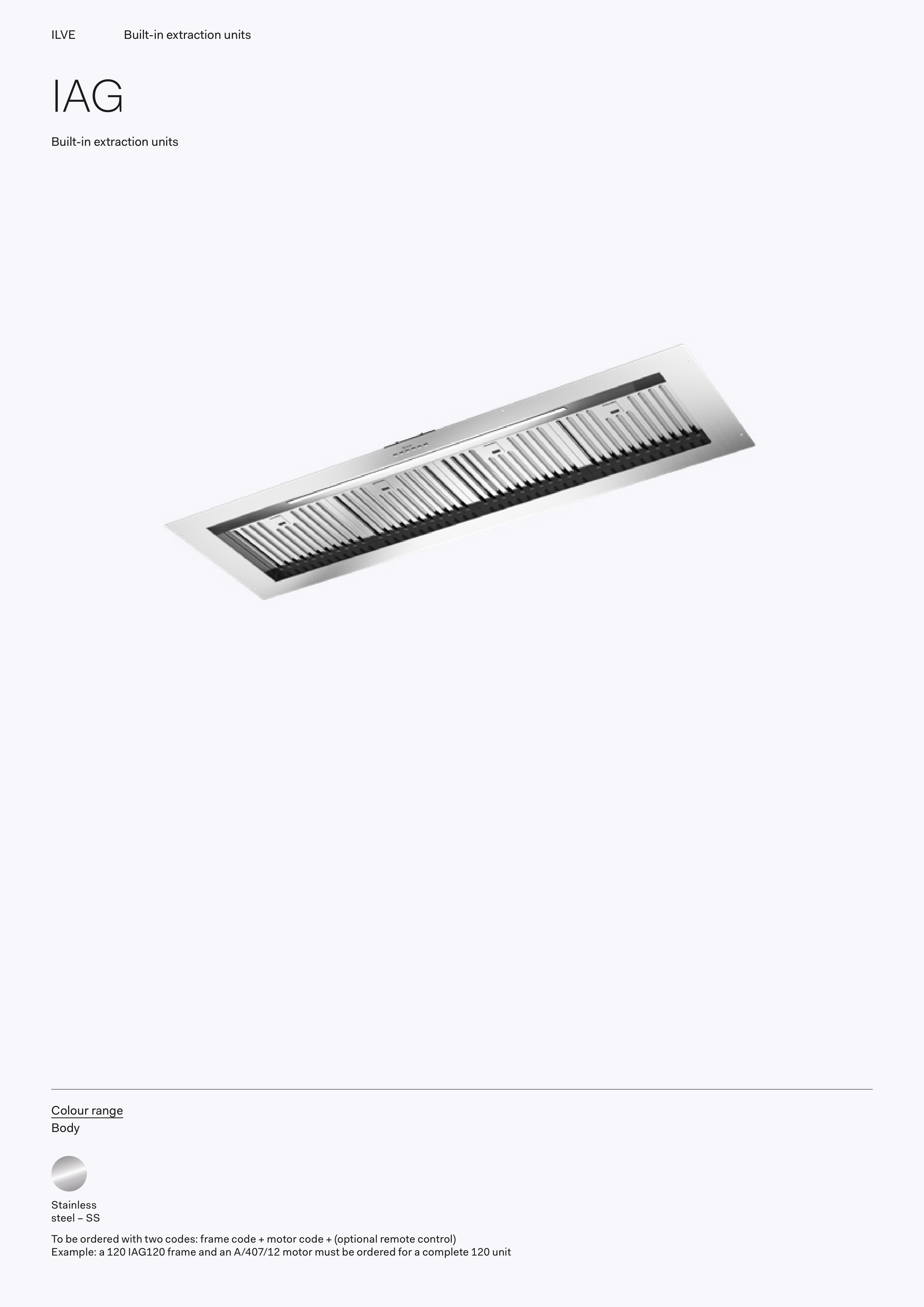 Example: a 120 IAG120 frame and an A/407/12 motor must be ordered for a complete 120 unit