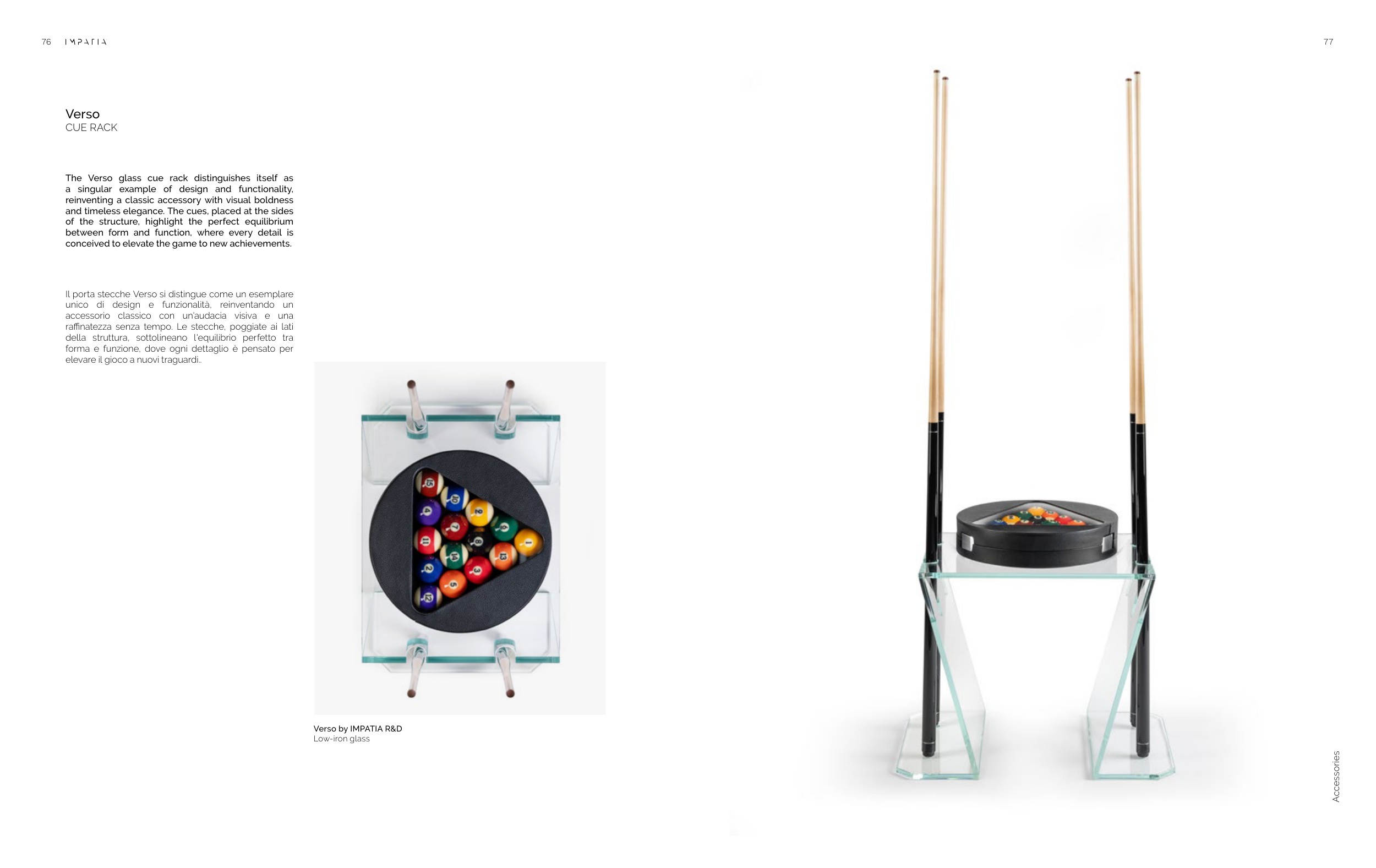 The Verso glass cue rack distinguishes itself as