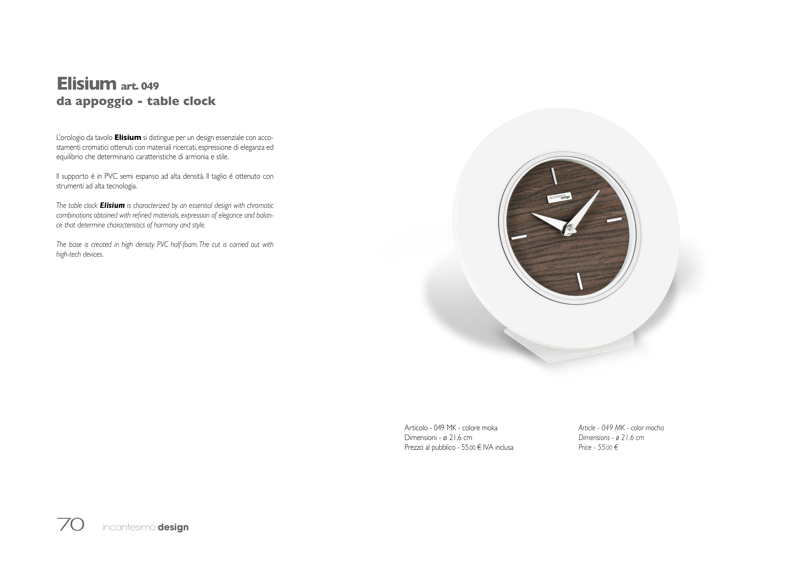 The table clock Elisium is characterized by an essential design with chromatic