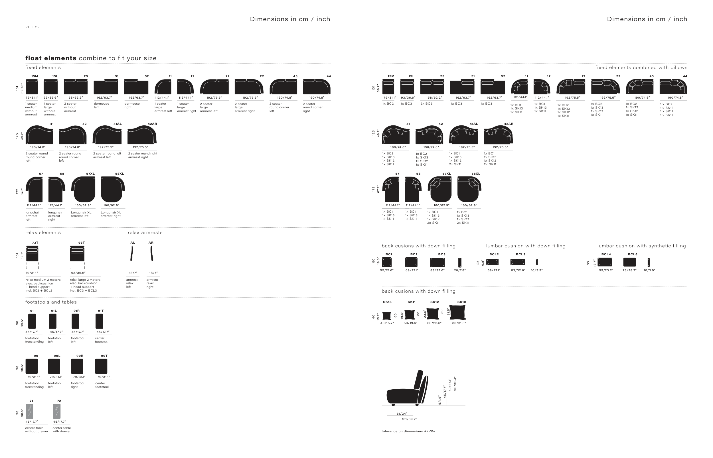 Dimensions in cm / inch