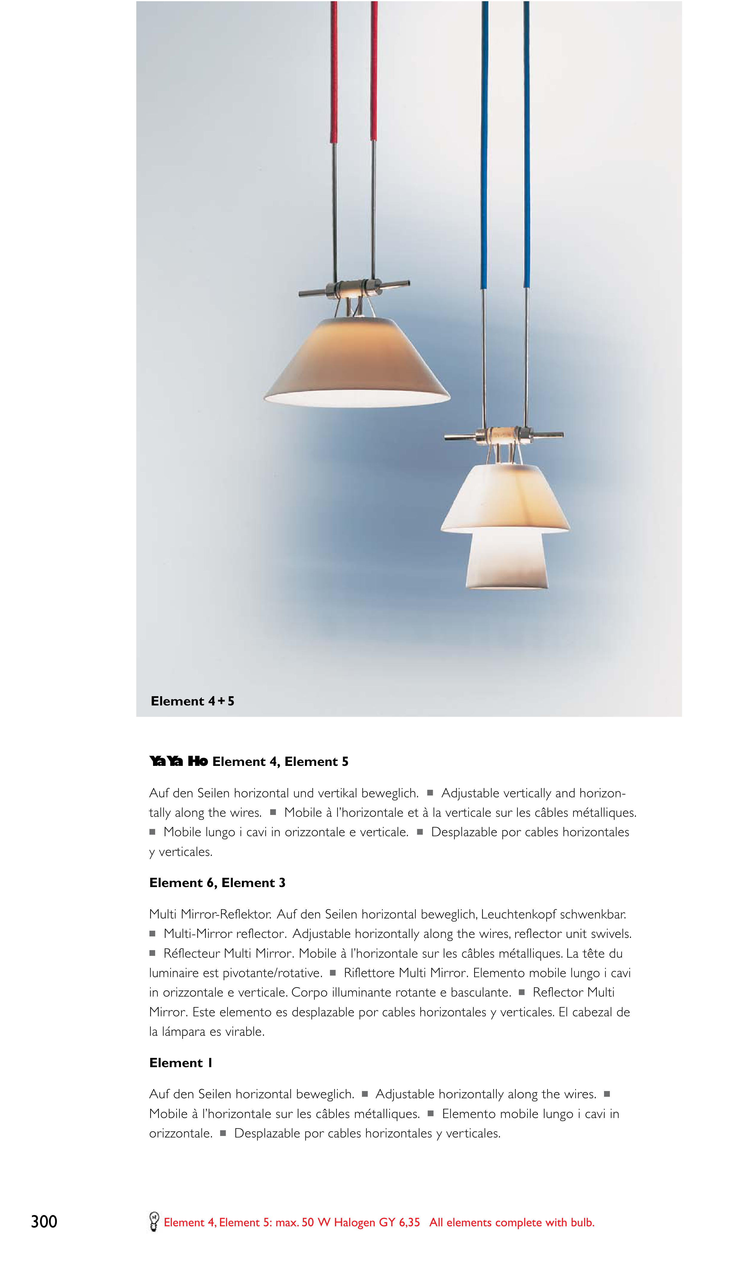 Element 4, Element 5: max. 50 W Halogen GY 6,35 All elements complete with bulb.