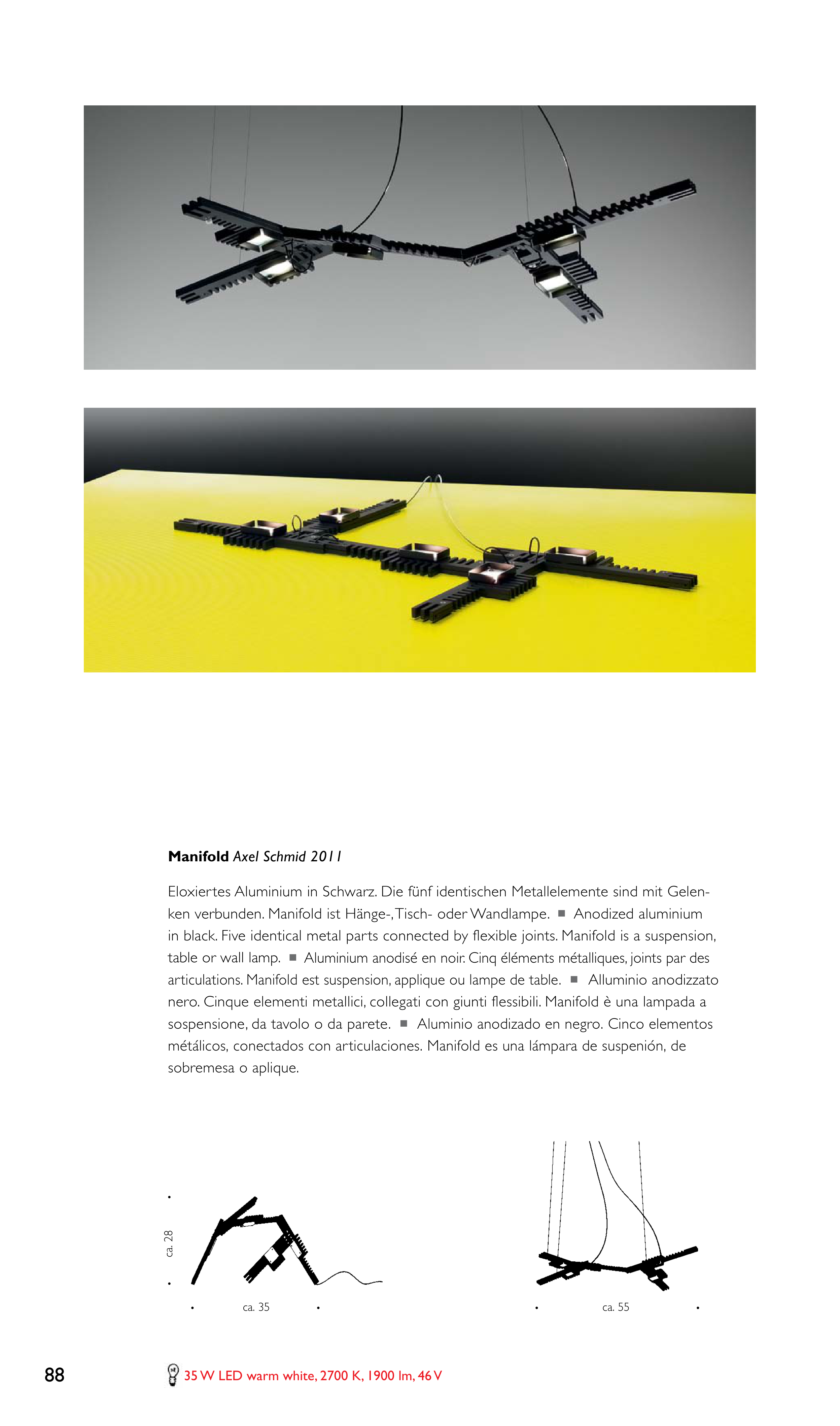 ken verbunden. Manifold ist Hänge-, Tisch- oder Wandlampe. ! Anodized aluminium