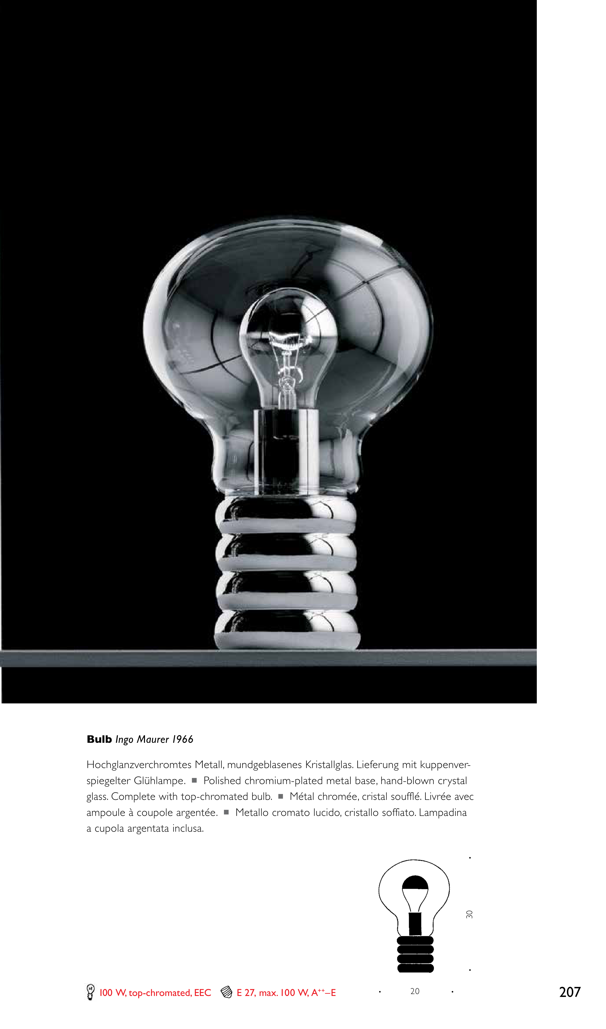 spiegelter Glühlampe. n Polished chromium-plated metal base, hand-blown crystal