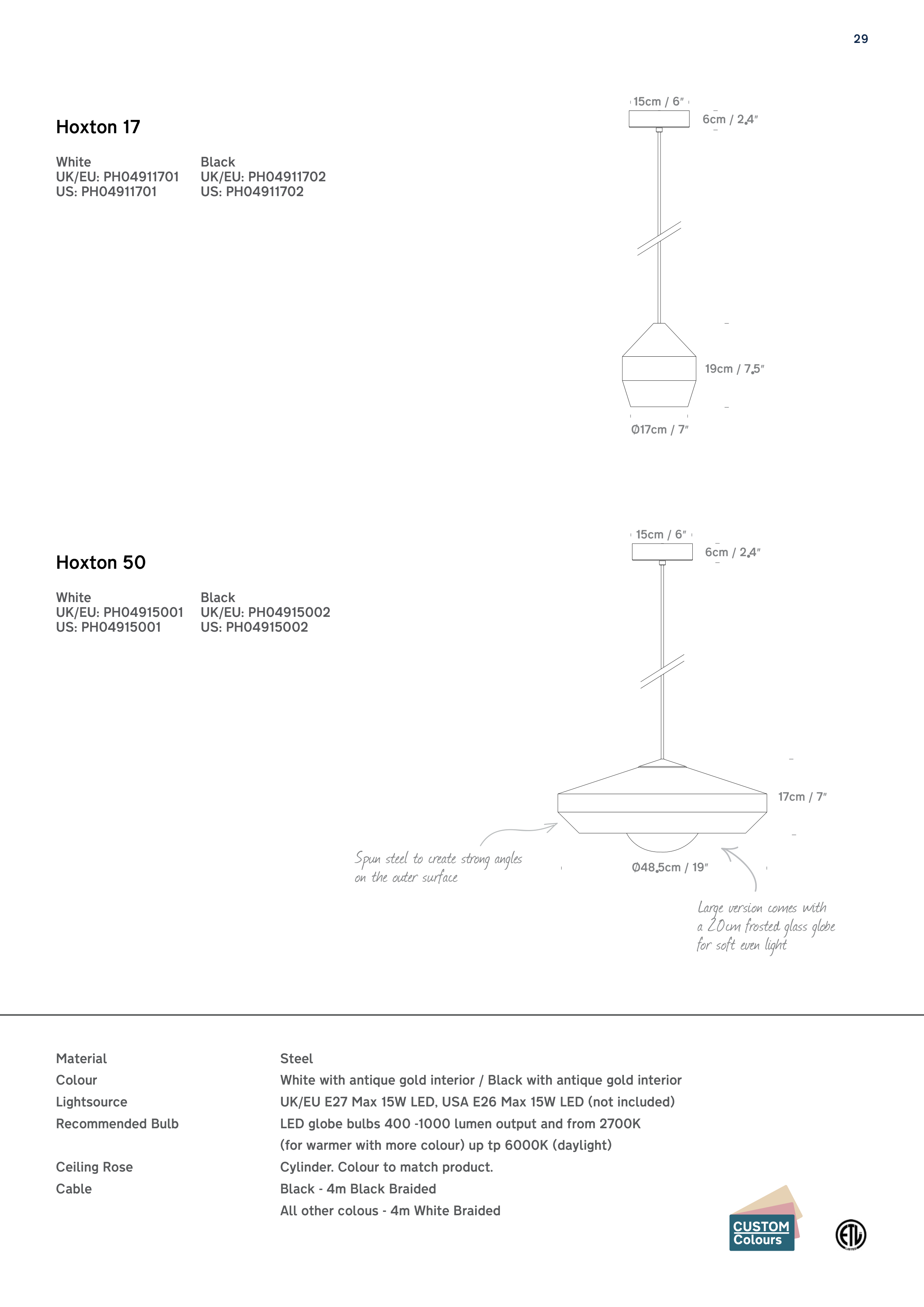UK/EU E27 Max 15W LED, USA E26 Max 15W LED (not included)
