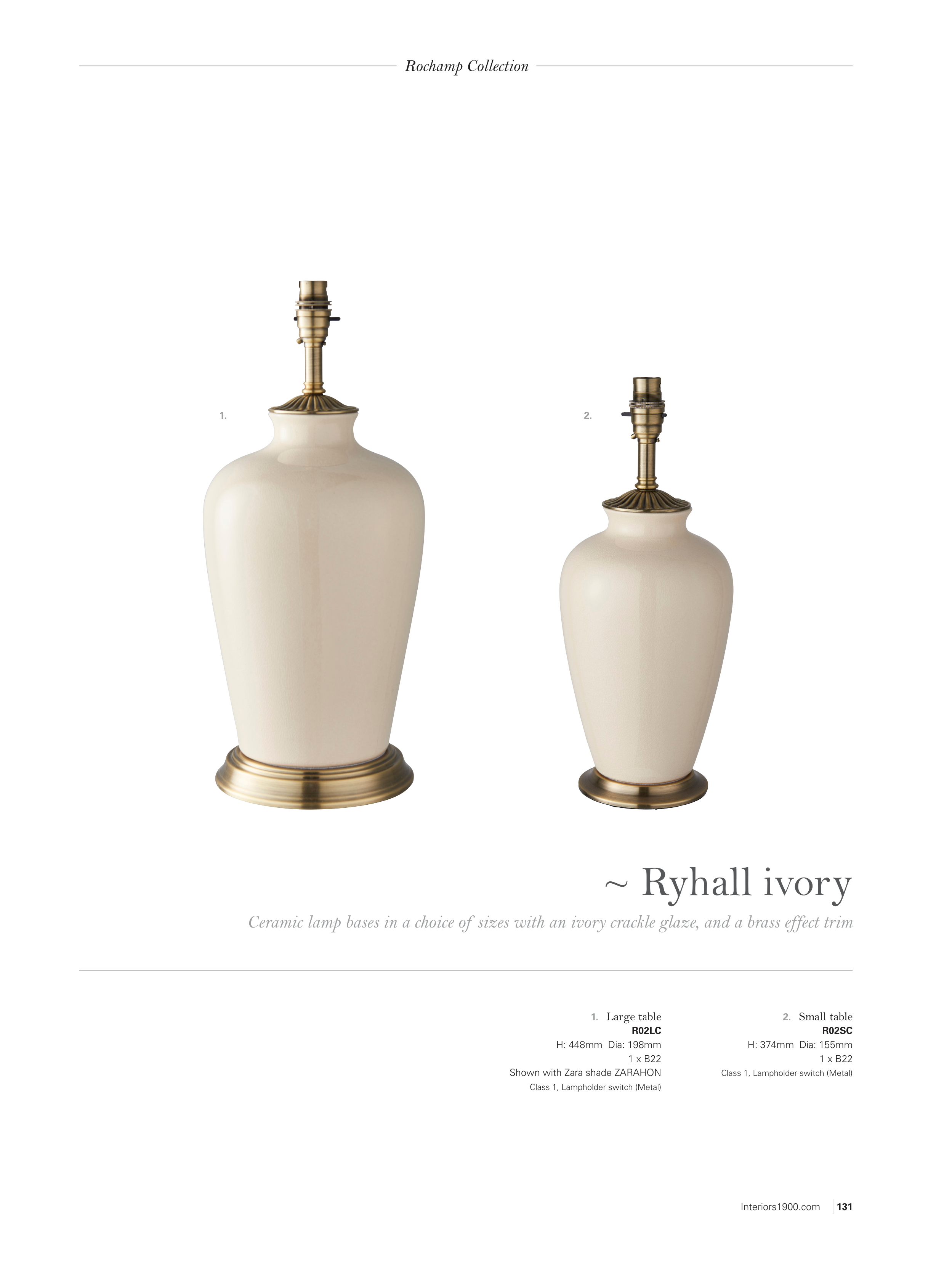 Ceramic lamp bases in a choice of sizes with an ivory crackle glaze, and a brass effect trim