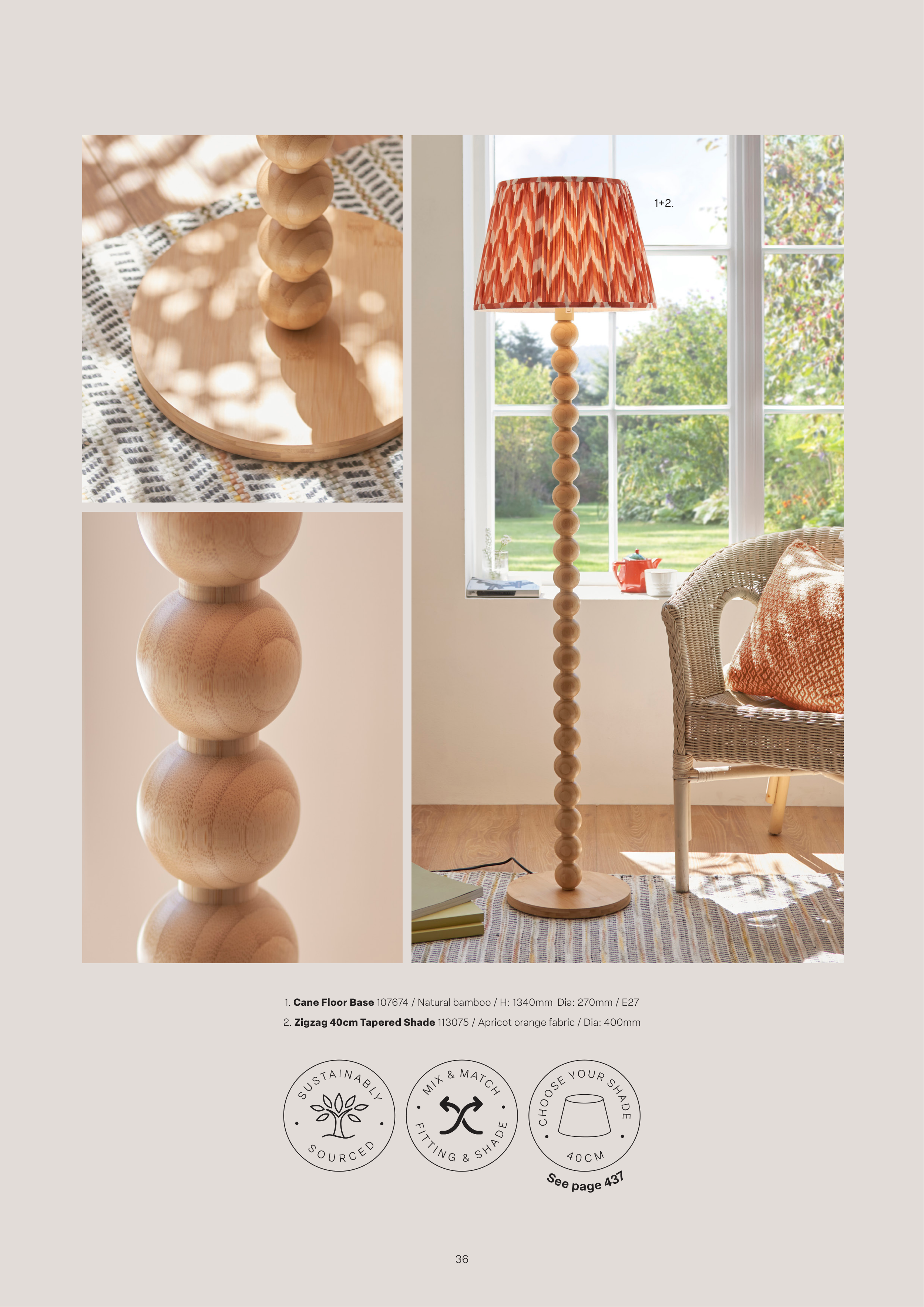 1. Cane Floor Base 107674 / Natural bamboo / H: 1340mm Dia: 270mm / E27