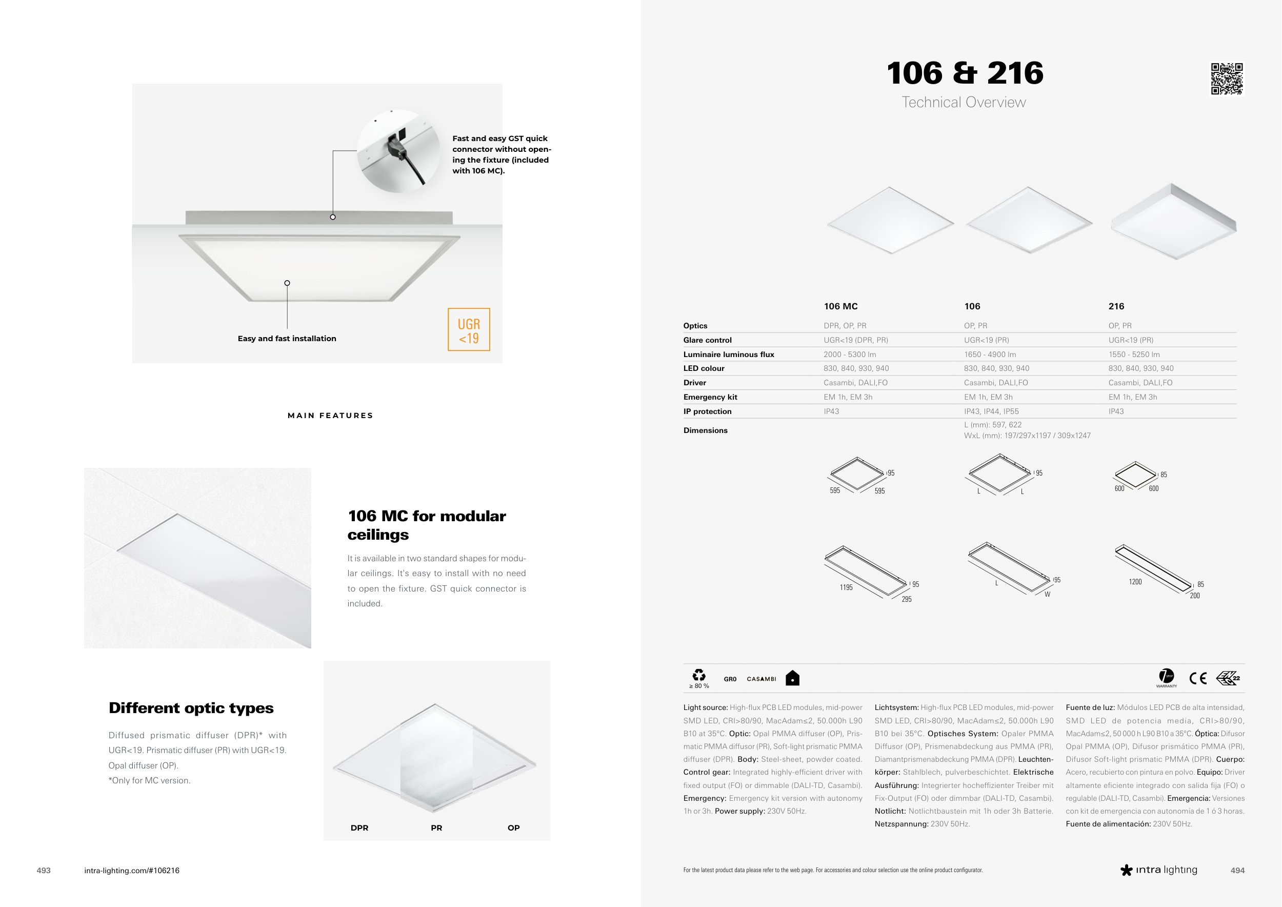 regulable (DALI-TD, Casambi). Emergencia: Versiones