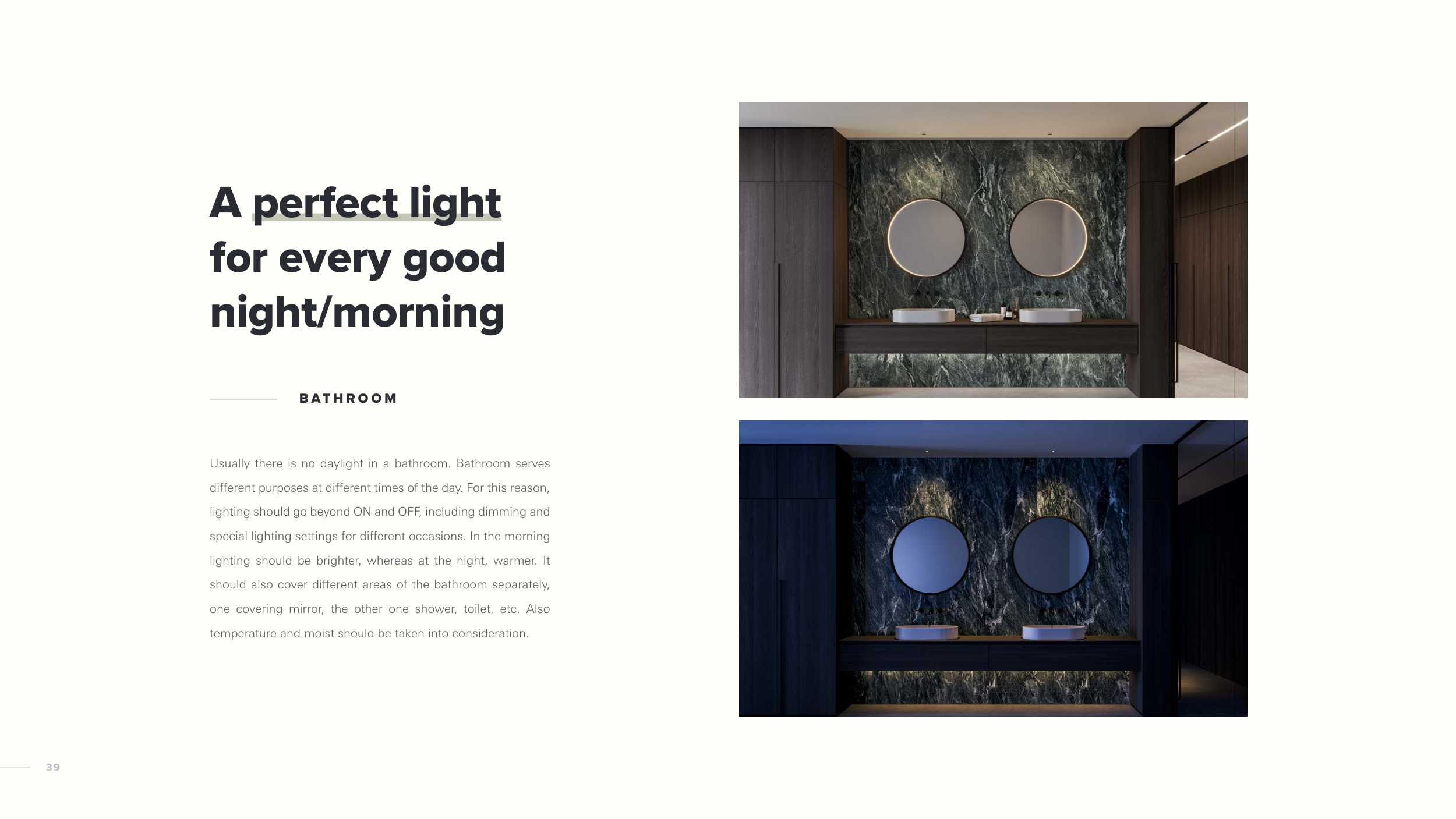 lighting should be brighter, whereas at the night, warmer. It