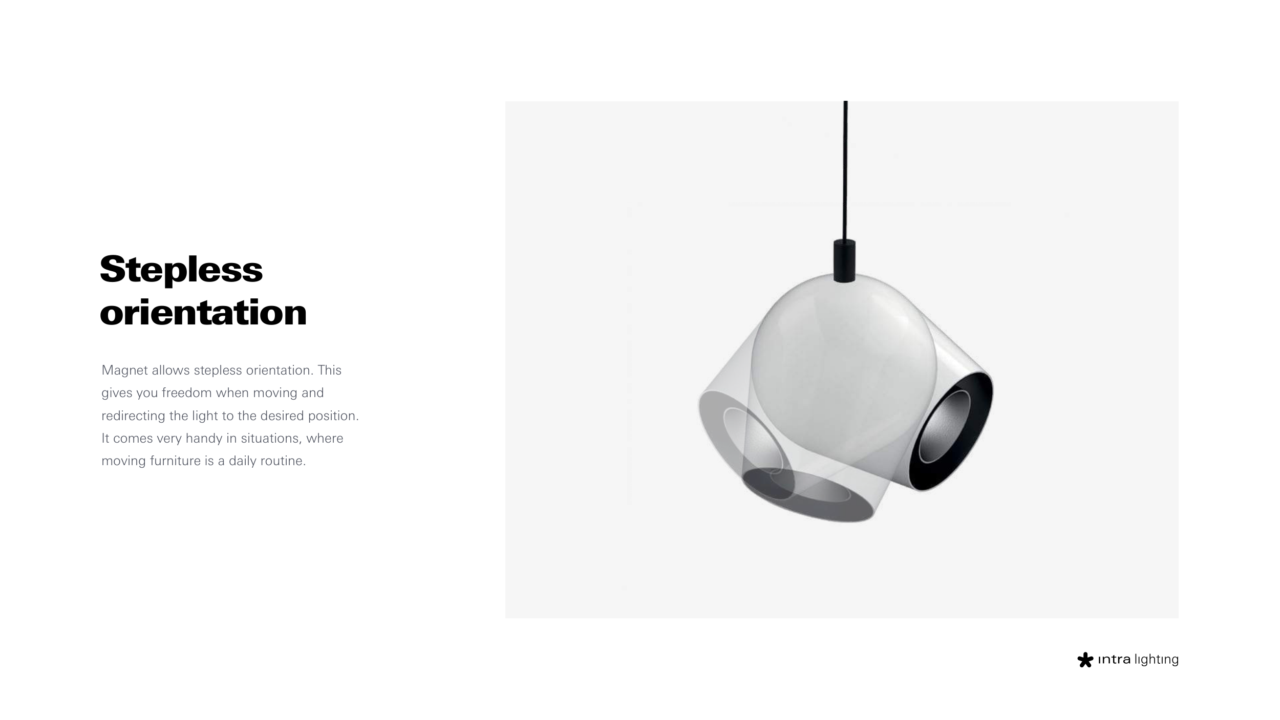 Magnet allows stepless orientation. This