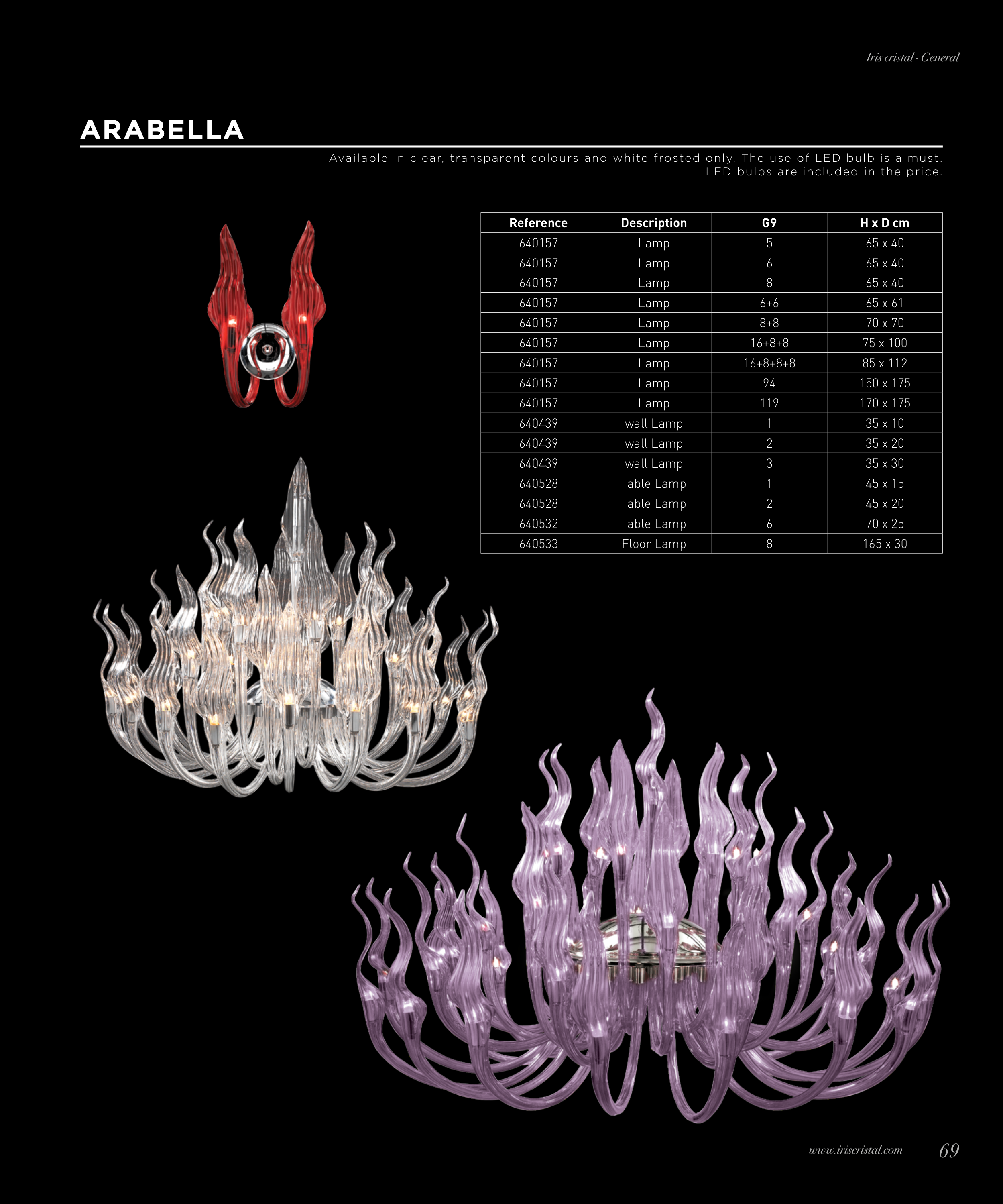 Available in clear, transparent colours and white frosted only. The use of LED bulb is a must.