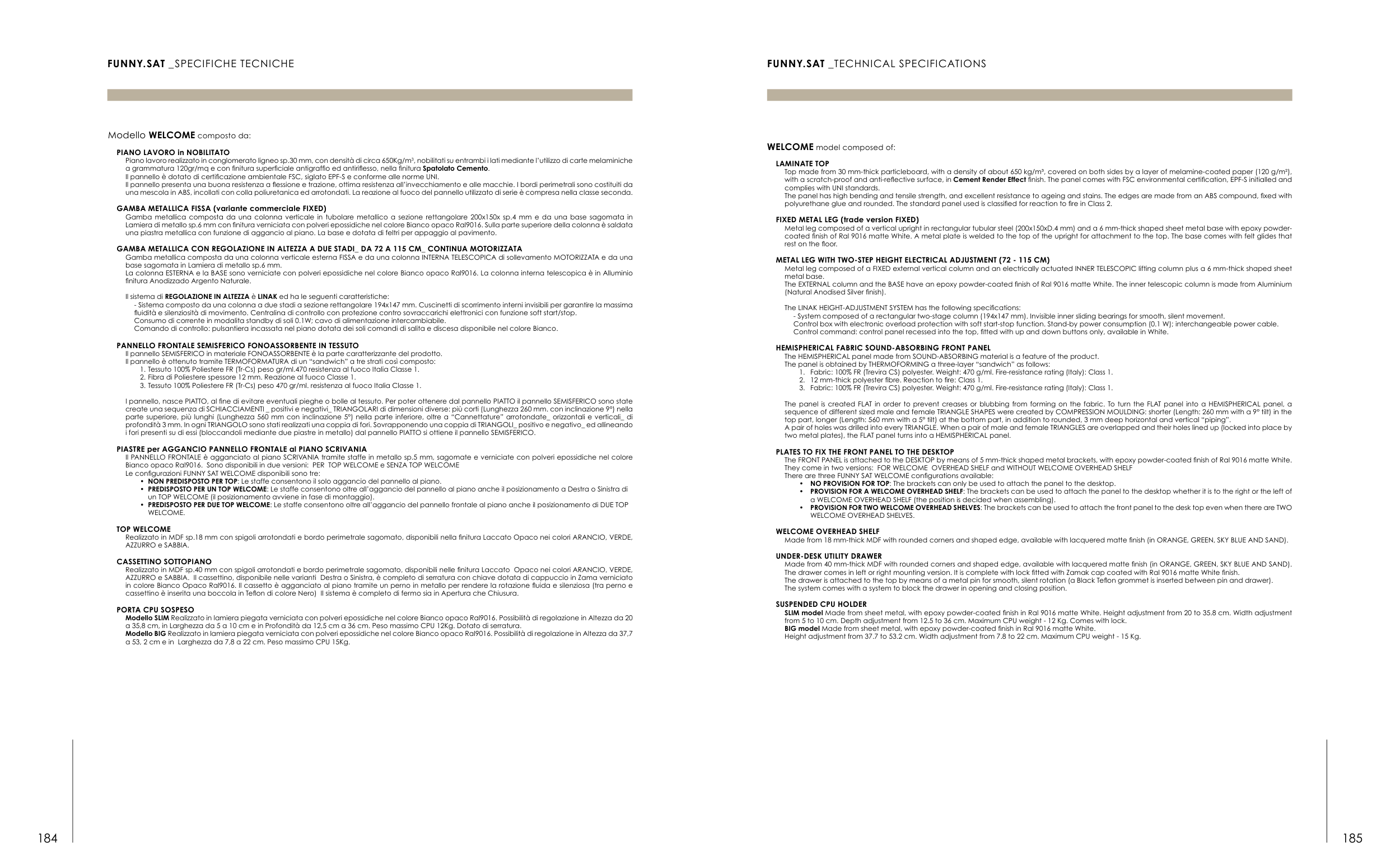 The FRONT PANEL is attached to the DESKTOP by means of 5 mm-thick shaped metal brackets, with epoxy powder-coated finish of Ral 9016 matte White.