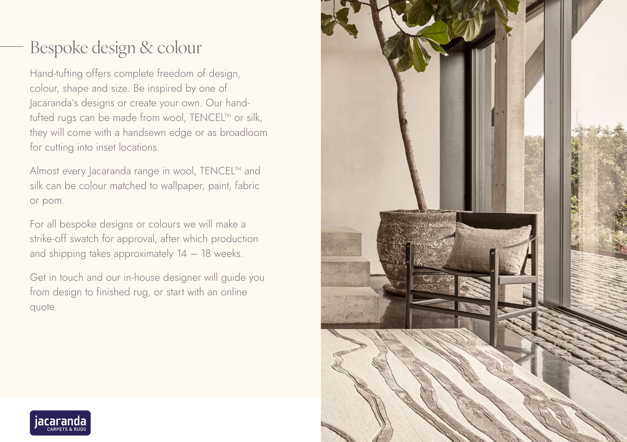 Hand-tufting offers complete freedom of design,