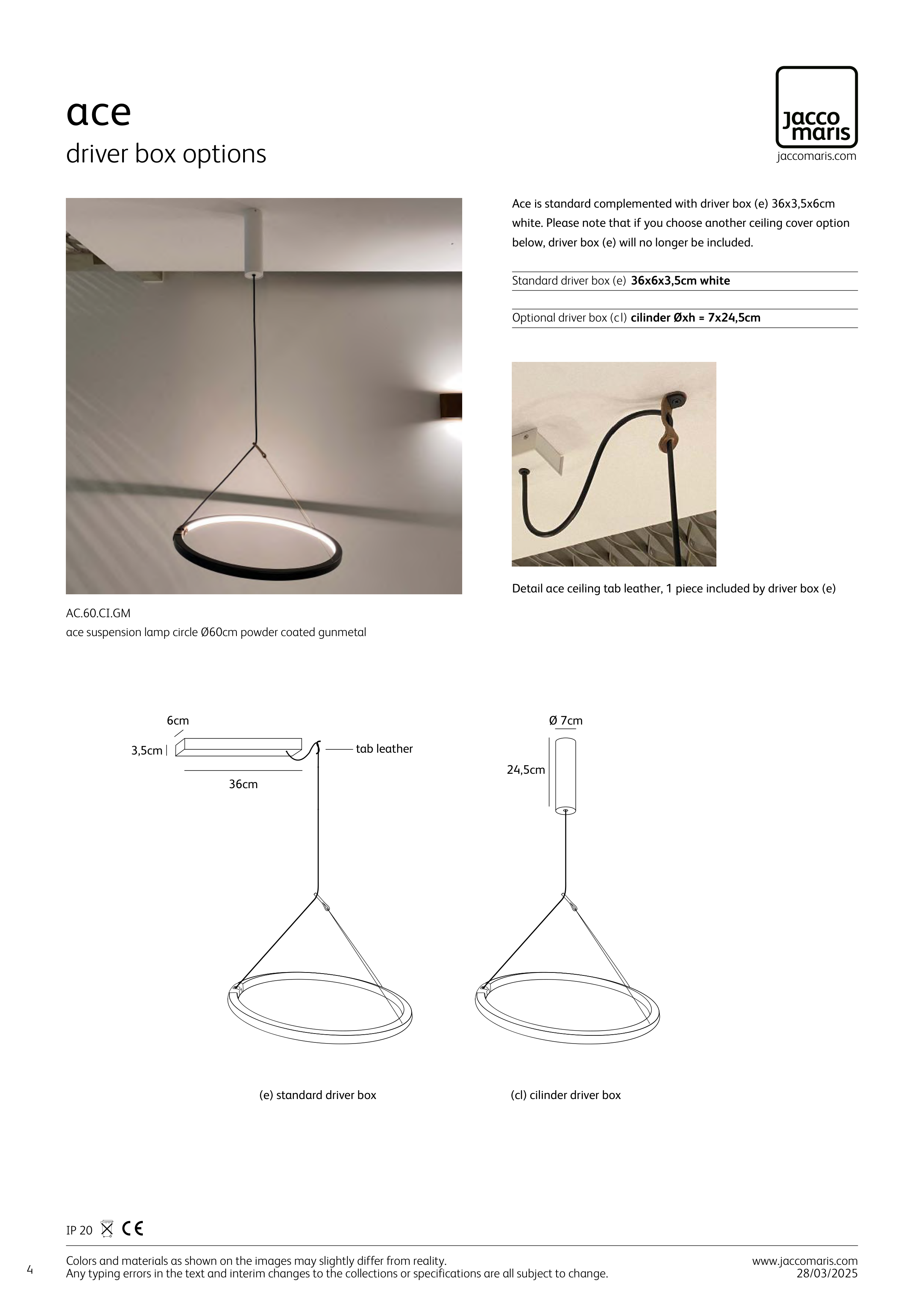 Ace is standard complemented with driver box (e) 36x3,5x6cm