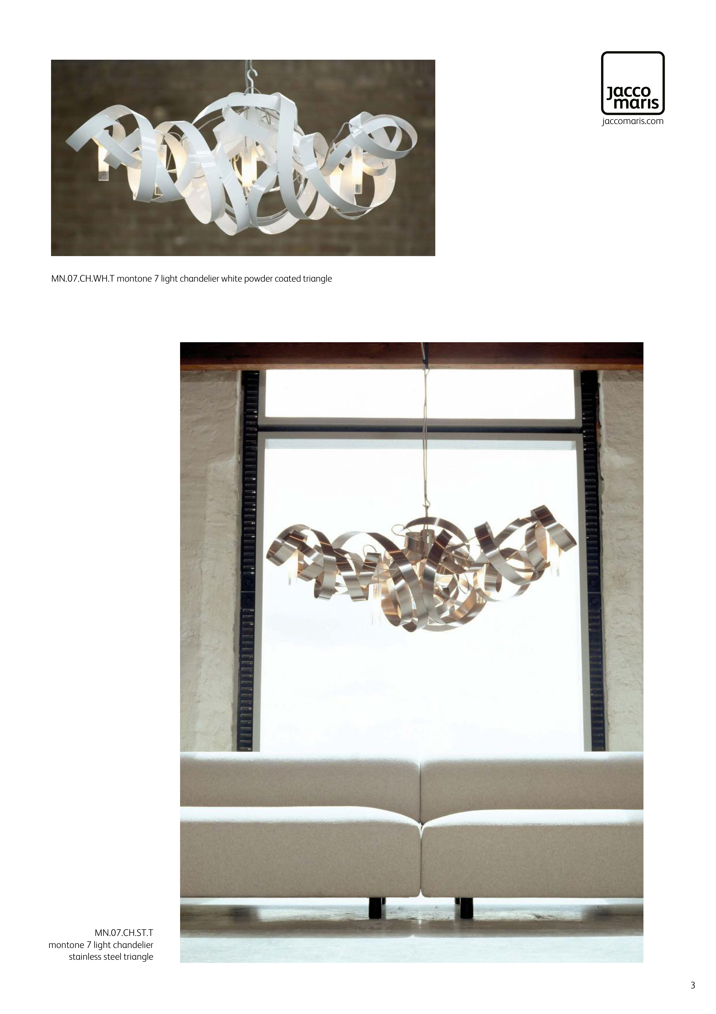 MN.07.CH.WH.T montone 7 light chandelier white powder coated triangle