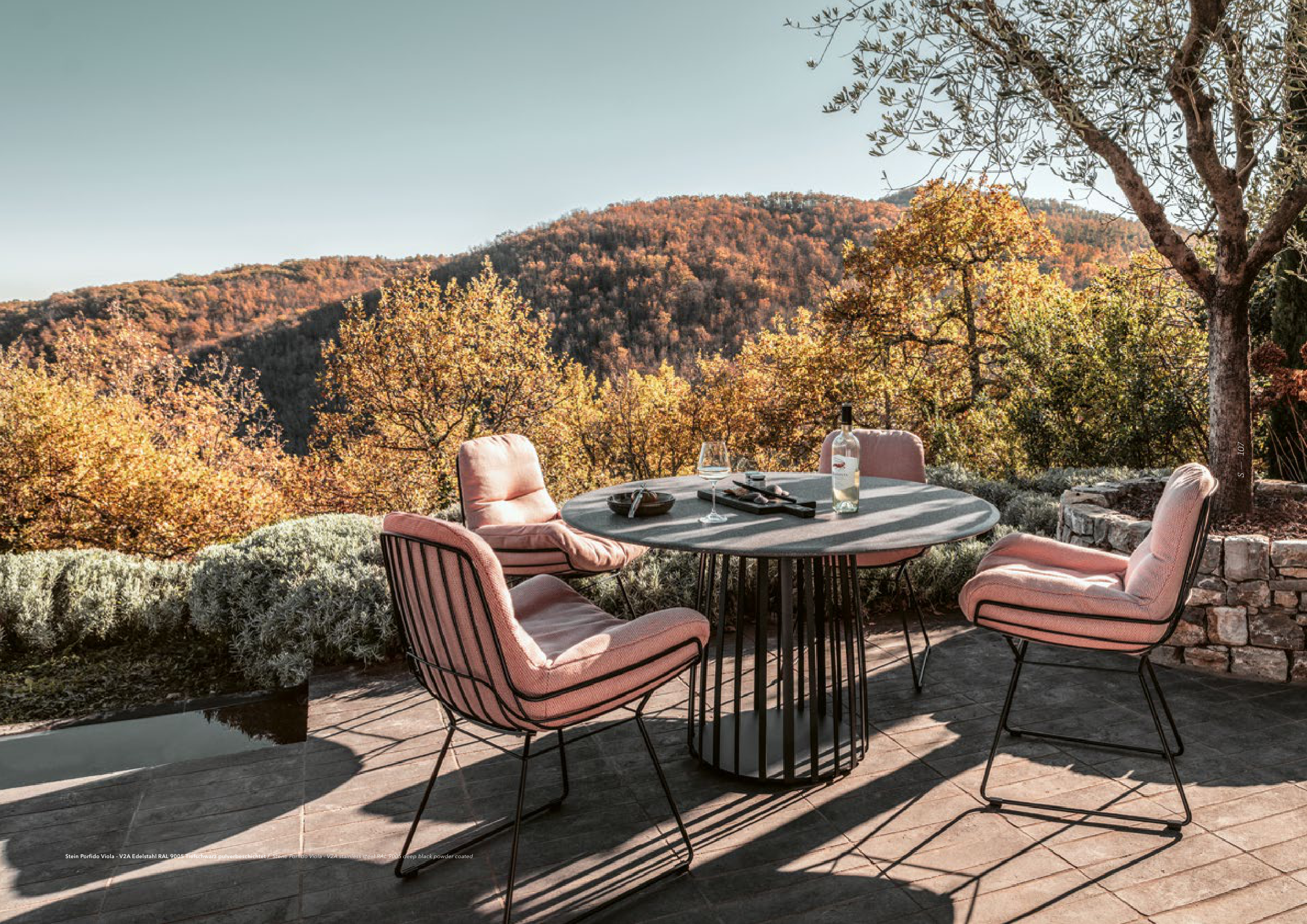 Stein Porfido Viola - V2A Edelstahl RAL 9005 Tiefschwarz pulverbeschichtet / Stone Porfido Viola - V2A stainless steel RAL 9005 deep black powder coated