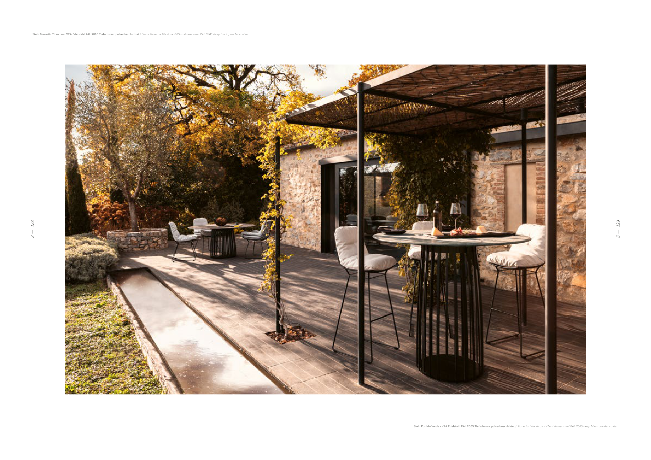 Stein Travertin Titanium - V2A Edelstahl RAL 9005 Tiefschwarz pulverbeschichtet / Stone Travertin Titanium - V2A stainless steel RAL 9005 deep black powder coated