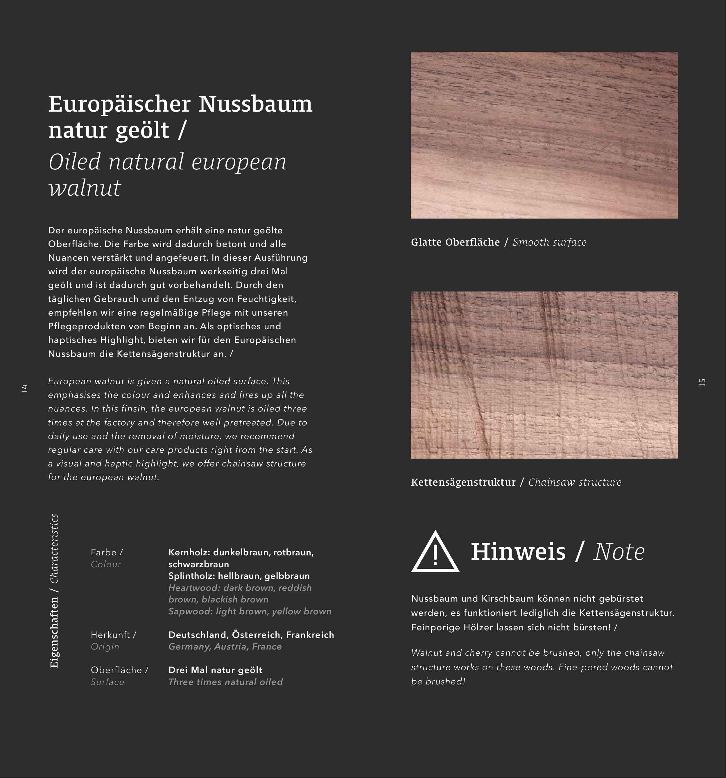 nuances. In this finsih, the european walnut is oiled three