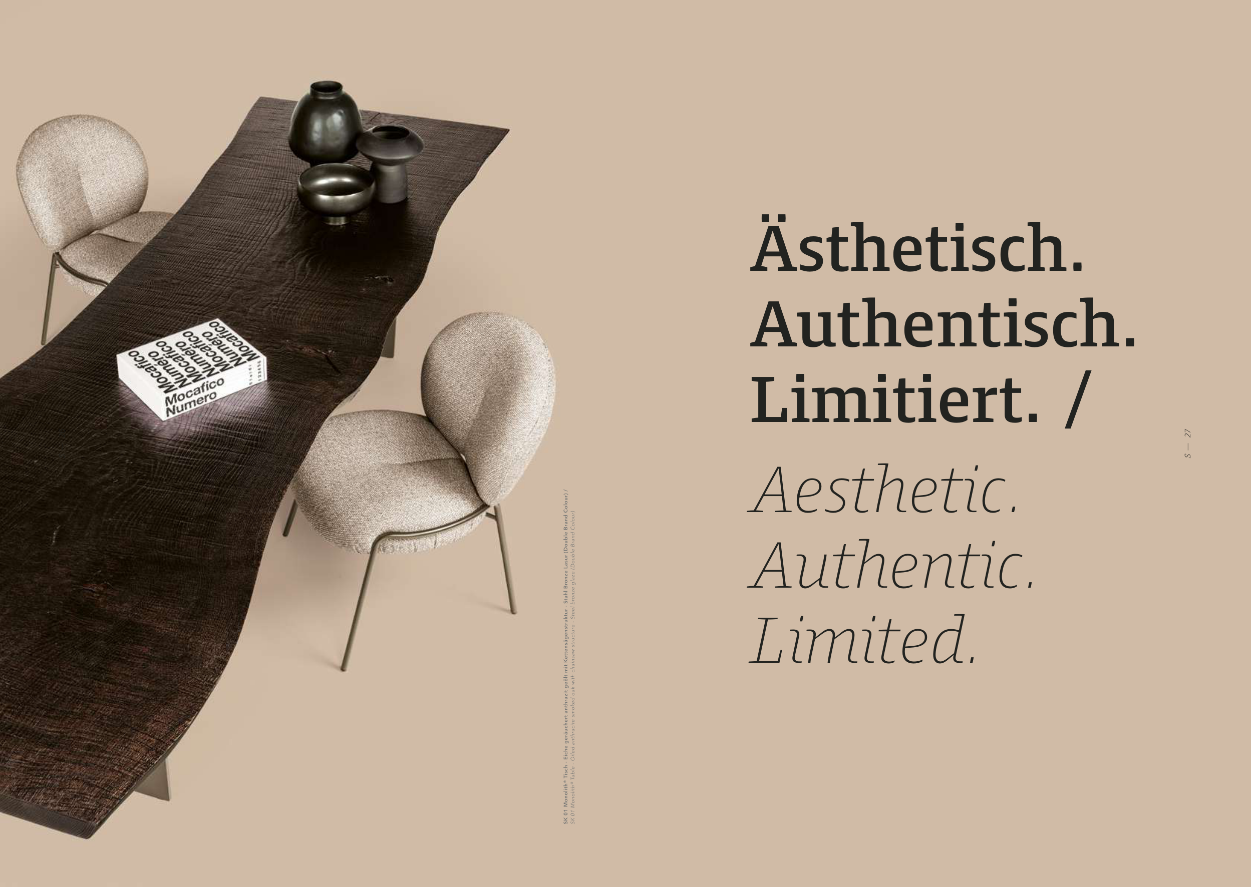 SK 01 Monolith® Table - Oiled anthracite smoked oak with chainsaw structure - Steel bronze glaze (Double Brand Colour)